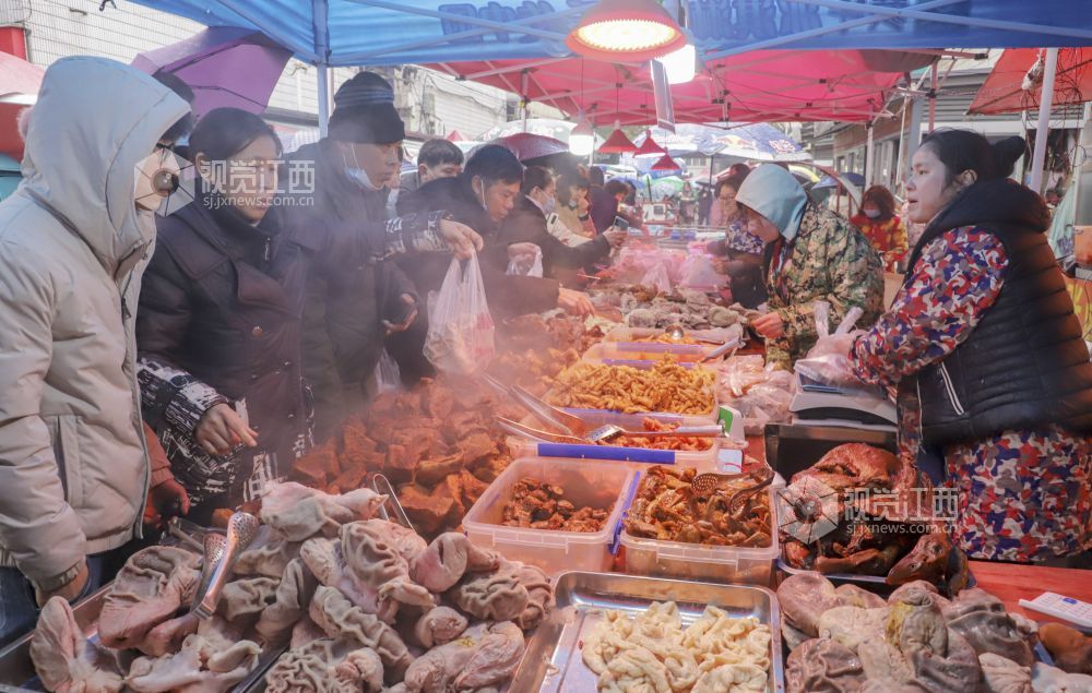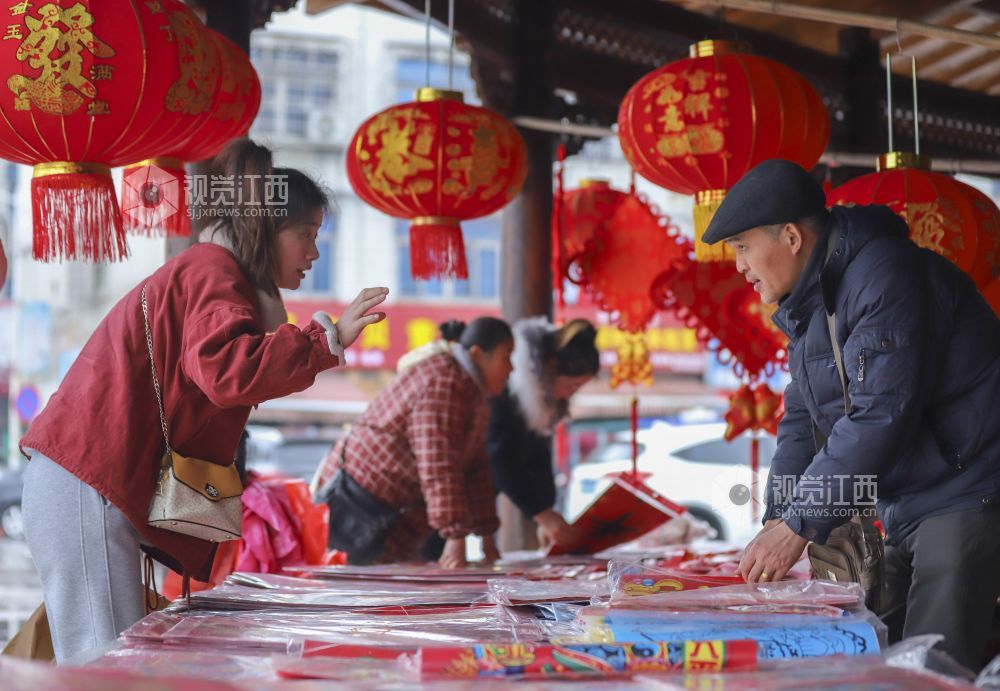 1月27日(农历腊月二十五),江西省湖口县市民在鄱阳湖大市场喜庆忙碌地置办年货。随着春节的临近,年味越来越浓,城乡处处可见人们置办年货的匆匆脚步。