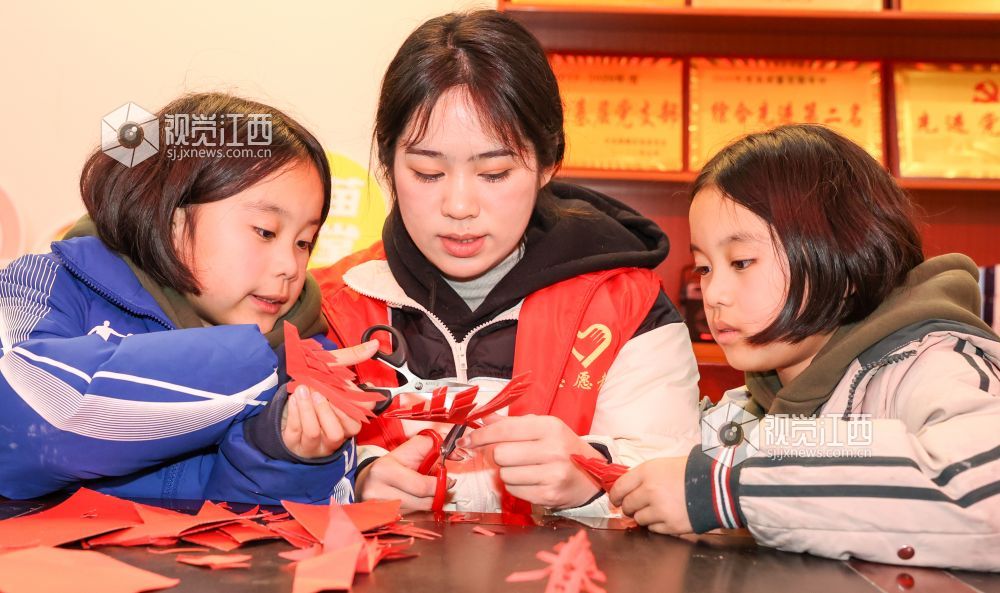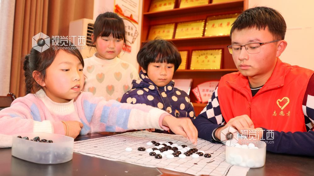 2022年1月28日,江西省瑞昌市大学生志愿者们在社区活动中心为孩子们辅导家庭作业、开展特长培训和科普教育等,并与他们开展游戏互动,陪伴孩子们度过一个充实有意义的寒假。