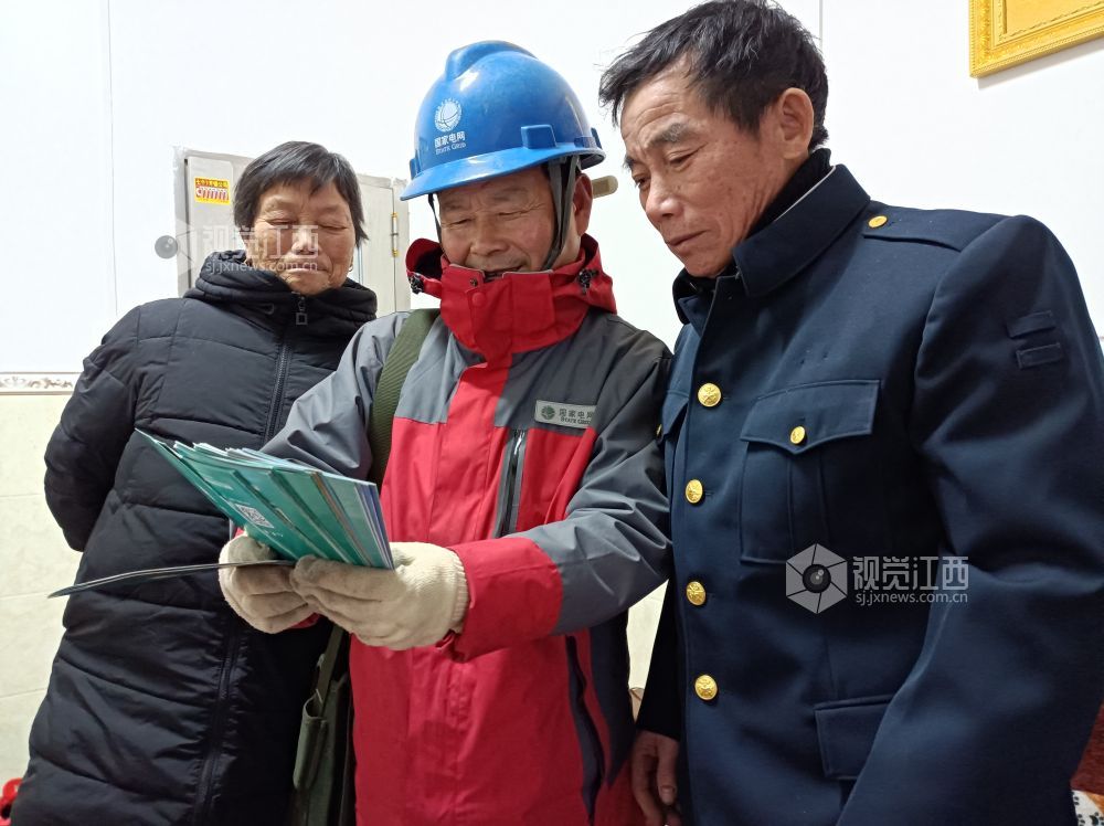 2月1日,农历正月初一,江西省永新县的电力工人在向居民宣传安全用电知识。据悉,为了让全县人民群众过上一个平安舒心的春节,国网吉安市永新县供电公司各供电所的电力工人放弃与亲人团聚和休息的机会,坚守岗位,保障居民安全放心用电,受到群众的一致好评。