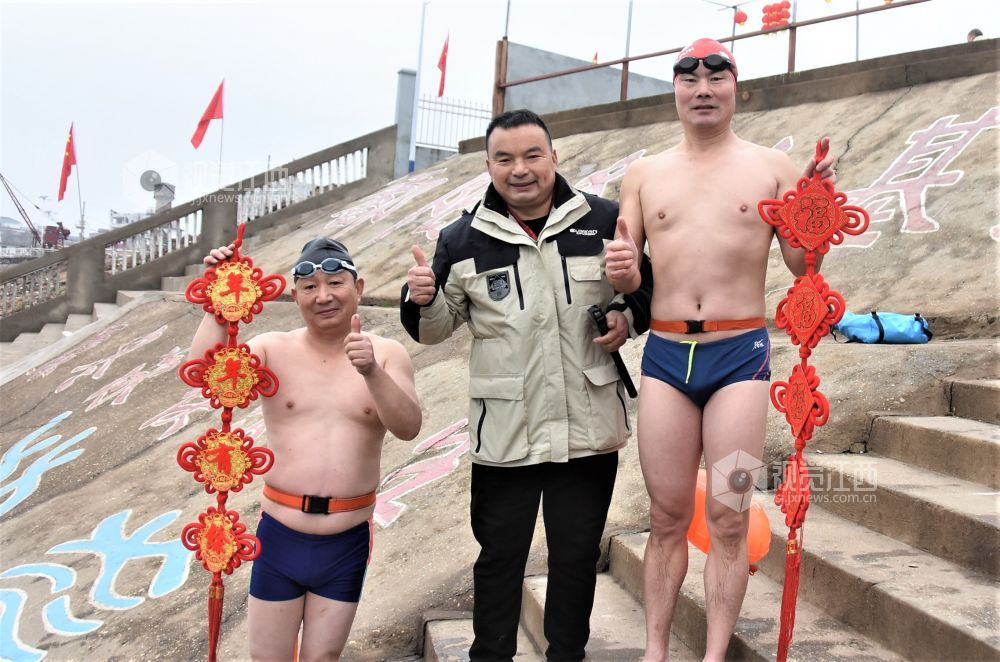 2022年2月3日,江西省鄱阳县游泳协会组织冬泳爱好者在该县游泳基地开展“庆新春,迎冬奥,游饶河”活动,喜迎冬奥会在北京举行。