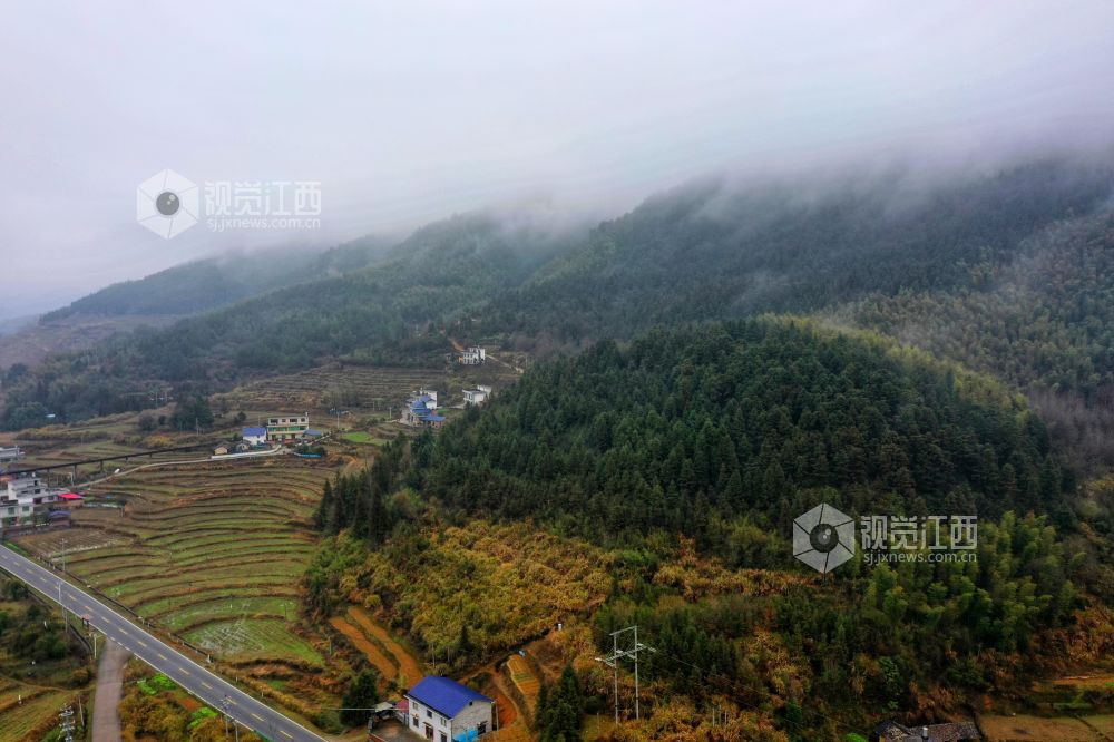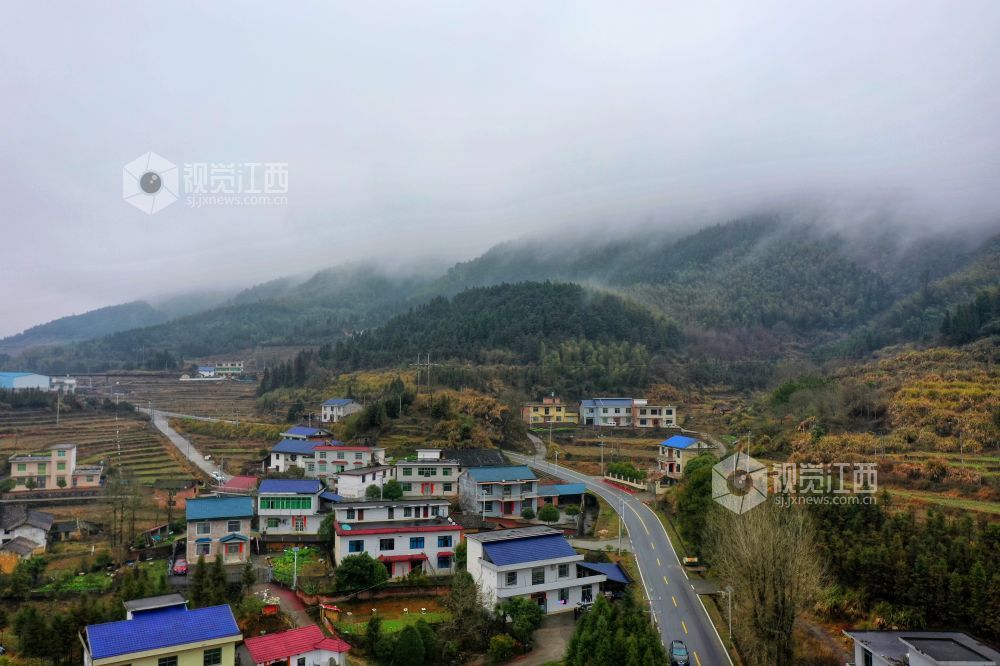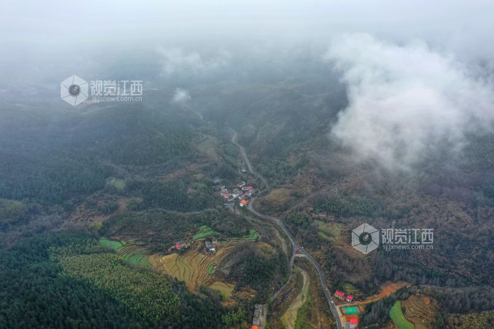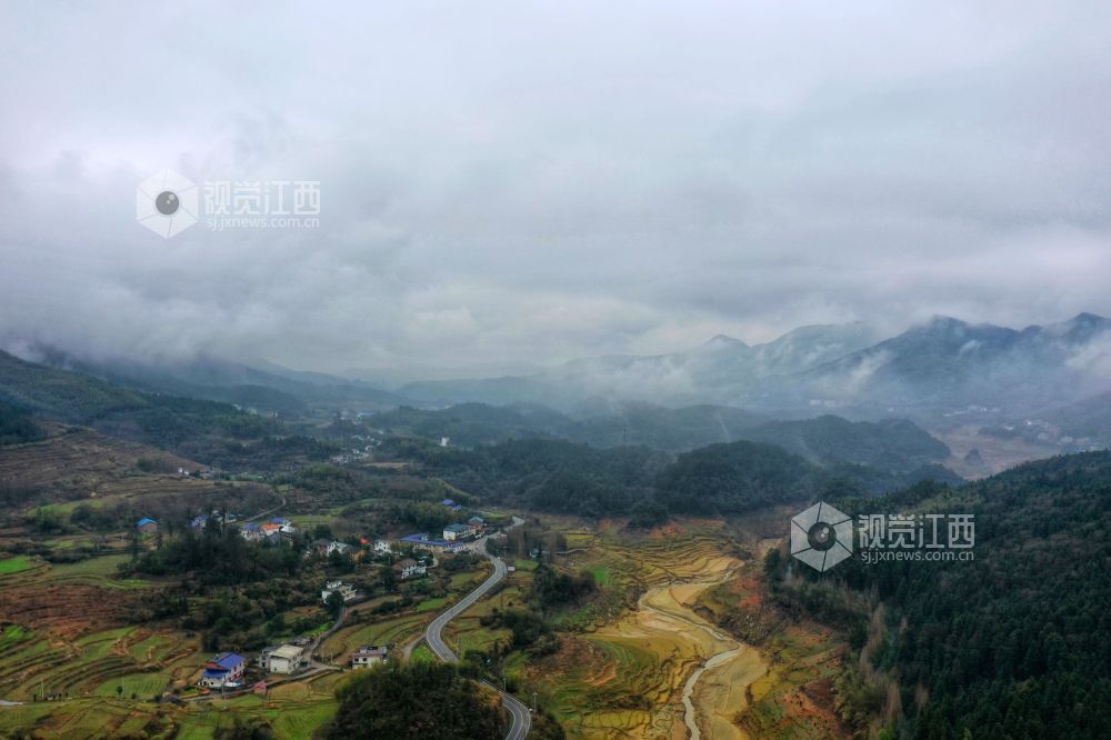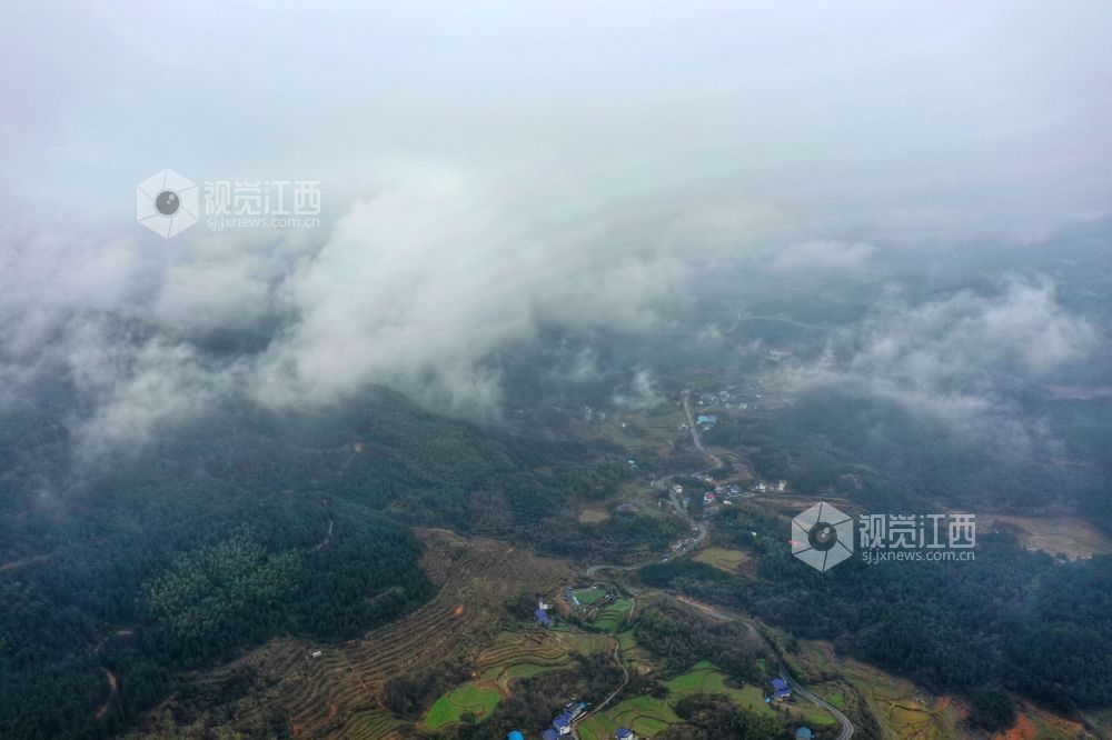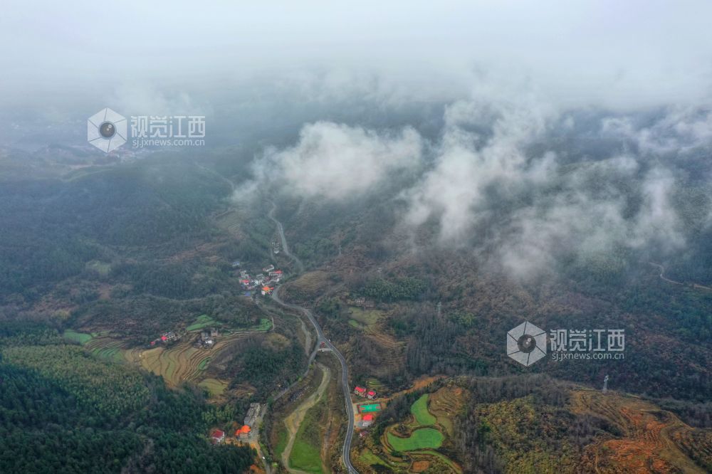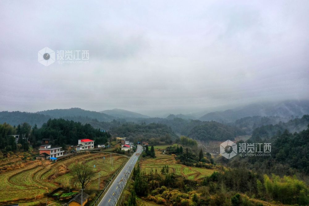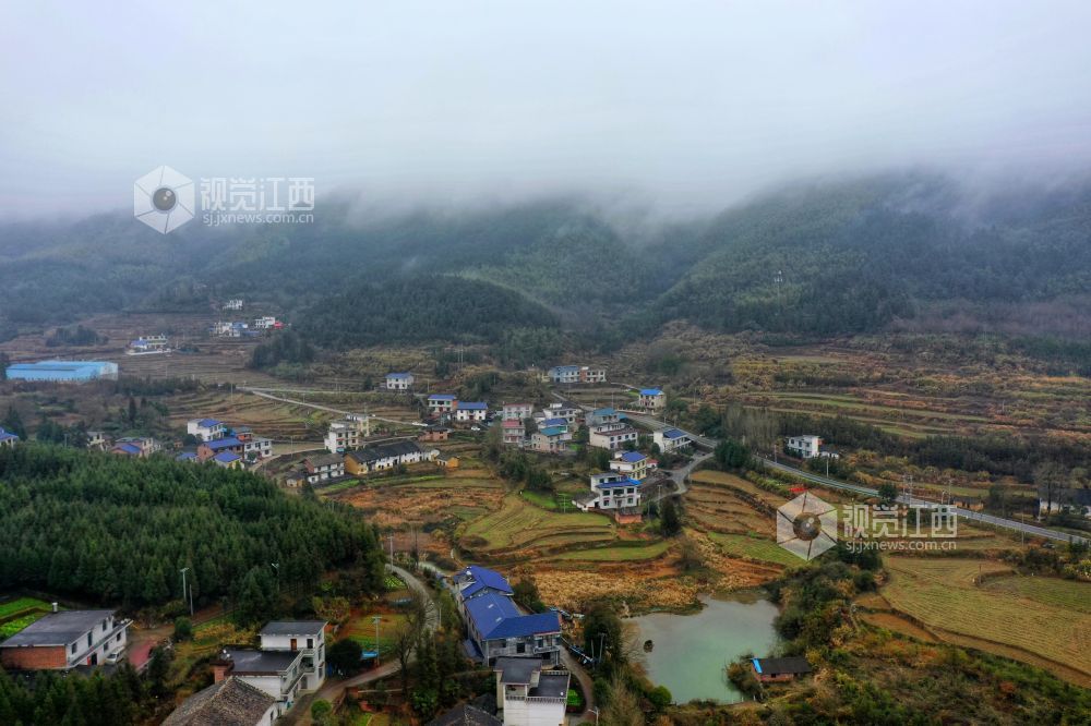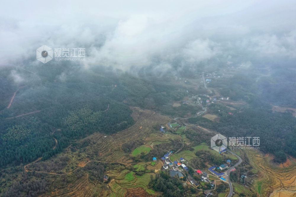 2022年2月4日,江西省萍乡市芦溪县长丰乡磨桥村一带层林尽染,农舍庭院与多彩田野、山丘融为一体,相得益彰,构成一幅幅美丽乡村画卷。