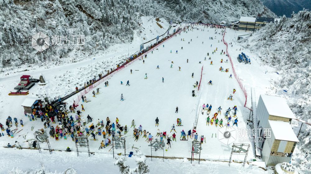 2022年2月5日,江西省宜春市铜鼓县七星岭滑雪场,雪后初晴,群山覆满冰雪,虽然天气寒冷,却挡不住人们参与冰雪运动庆北京冬奥的热情,连续几天滑雪人数达运行上限。