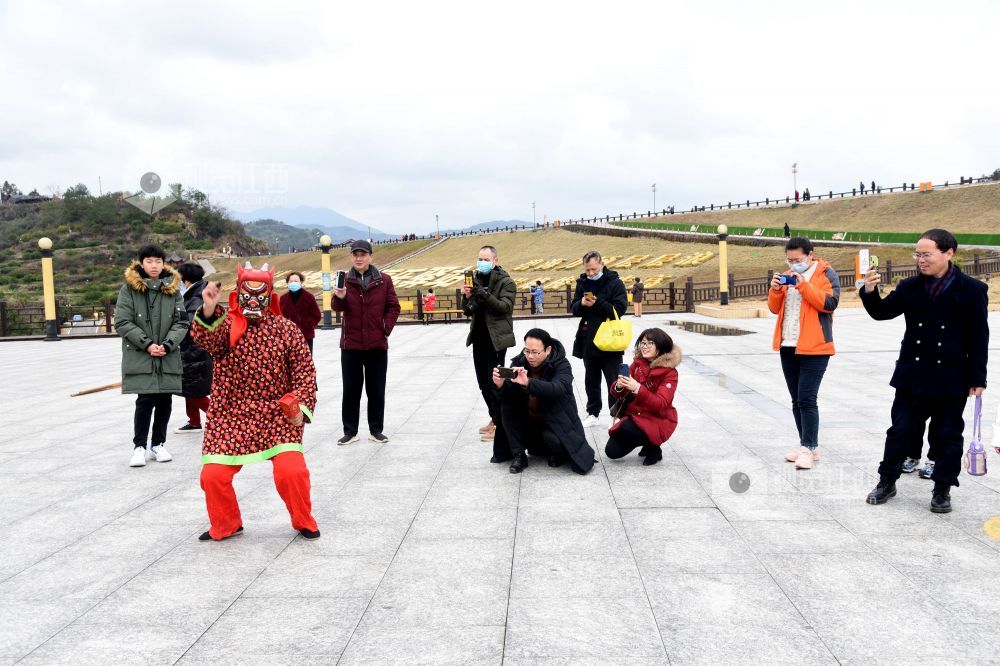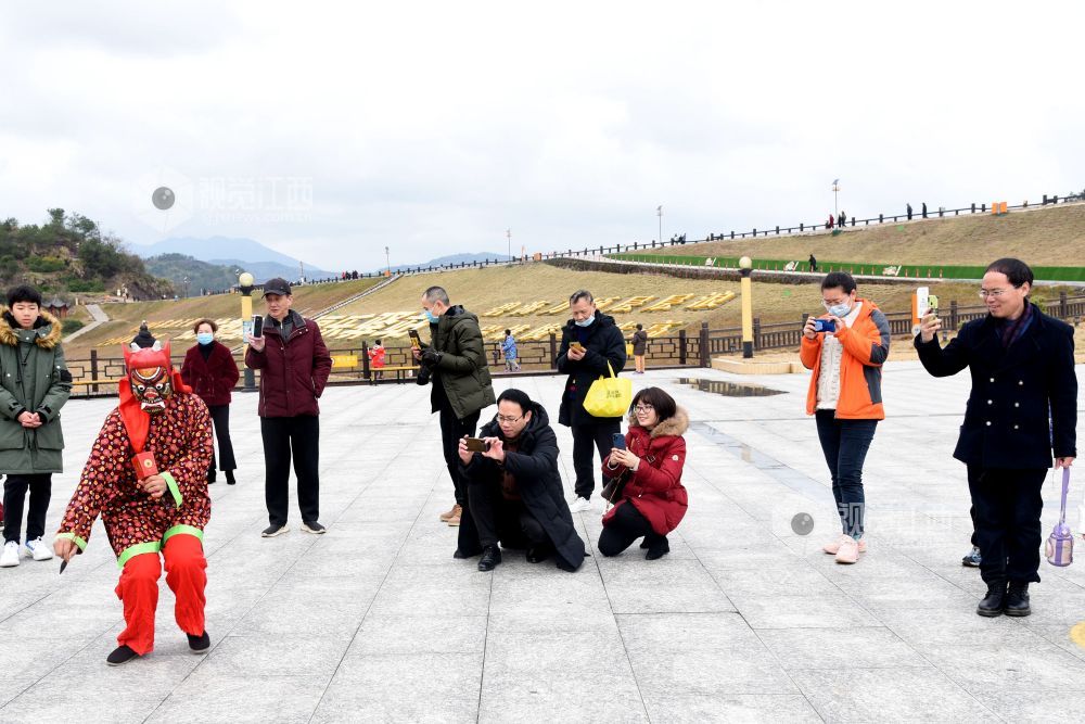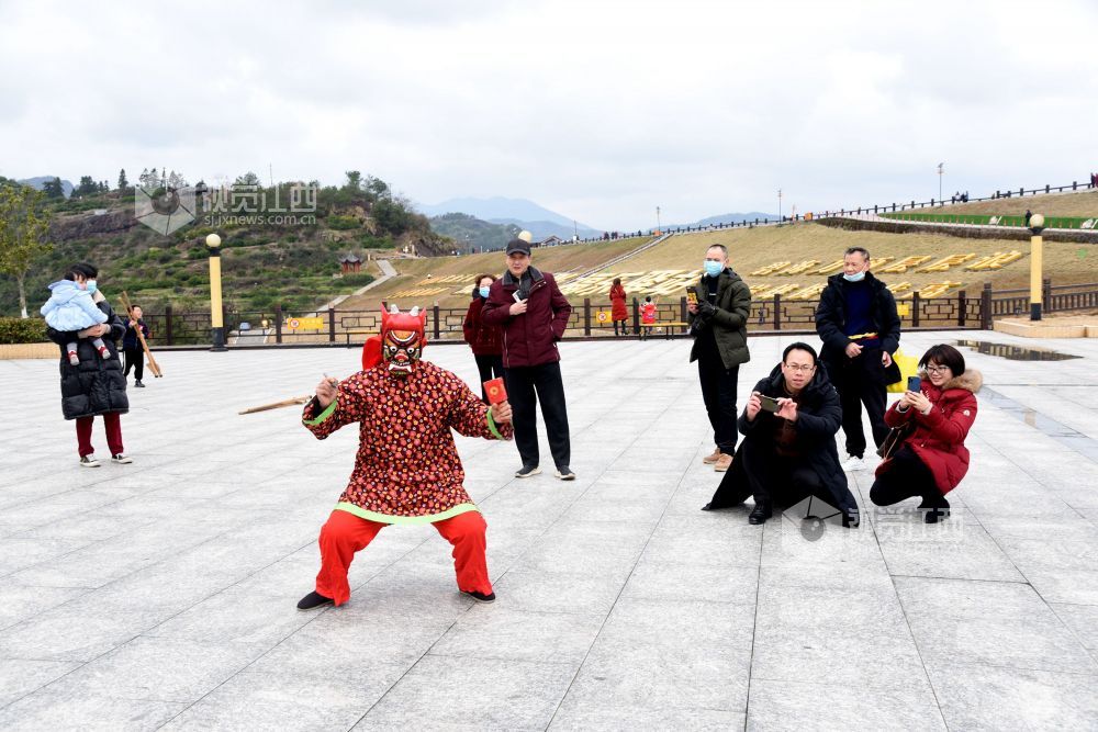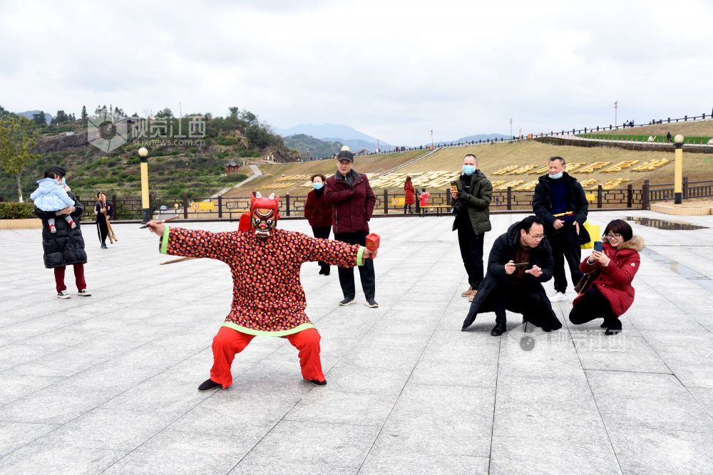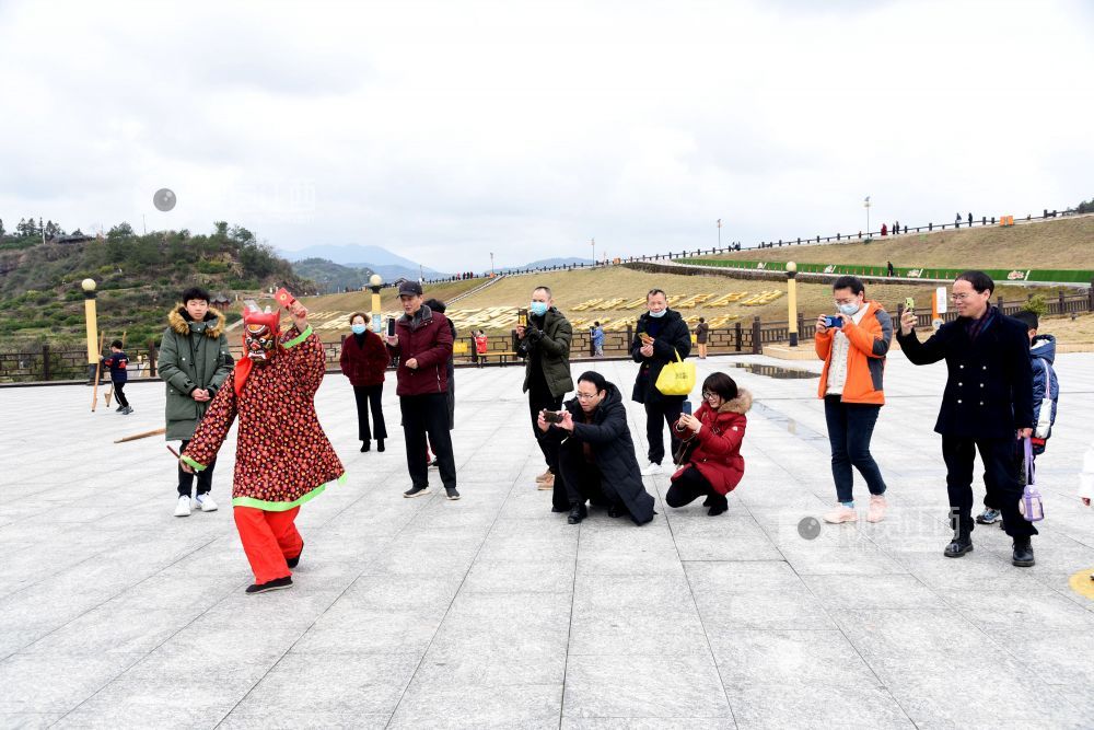 2022年2月5日,江西省南丰县观必上景区组织傩舞表演为前来景区旅游的游客祈福,让游客度过欢快、祥和的假期。