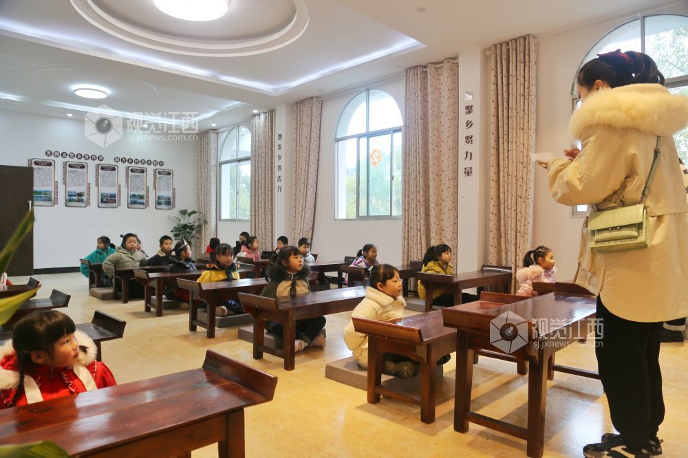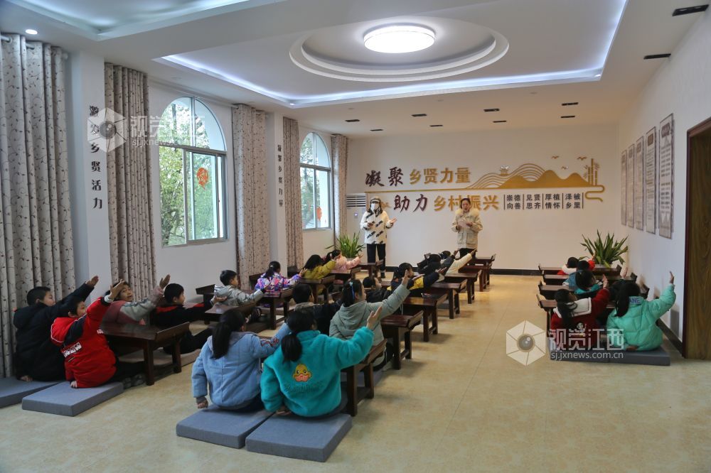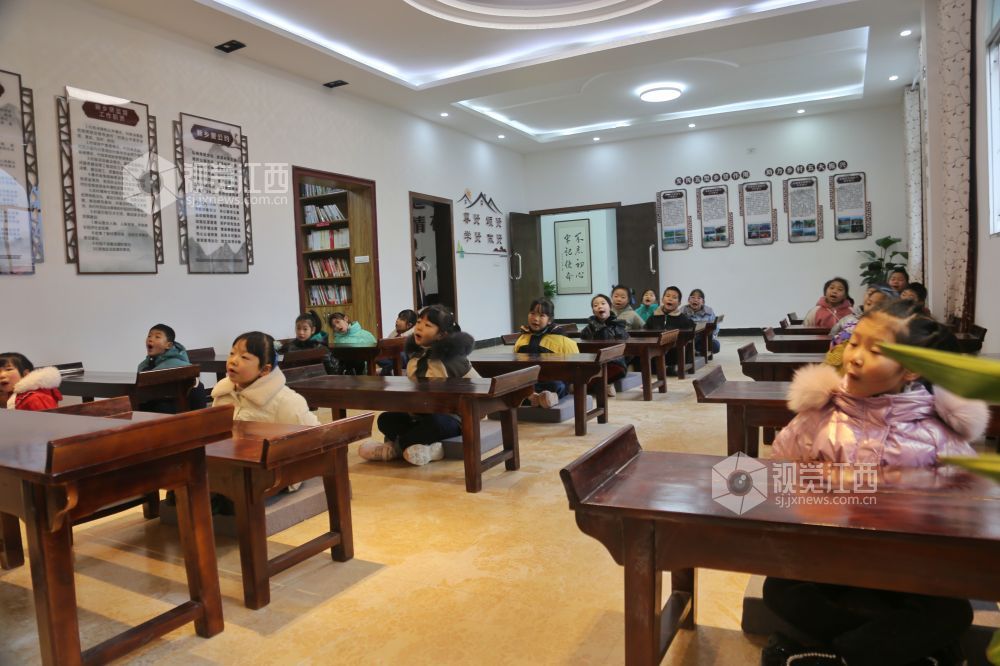 2022年2月6日,在江西省萍乡市芦溪县芦溪镇东阳村书院活动大厅里,一群小朋友认真盘坐,在老师陪伴下认真诵读,让孩子们从小开始传承国学、明理知耻、崇德向善。