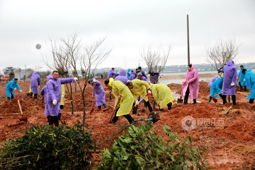 春回大地,万象更新,新年上班第一天,江西省吉安市吉水县各机关单位干部职工来到该县醪桥镇坝溪村参加义务植树活动,为建设大美吉水添绿增靓。