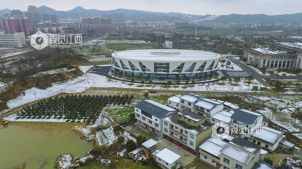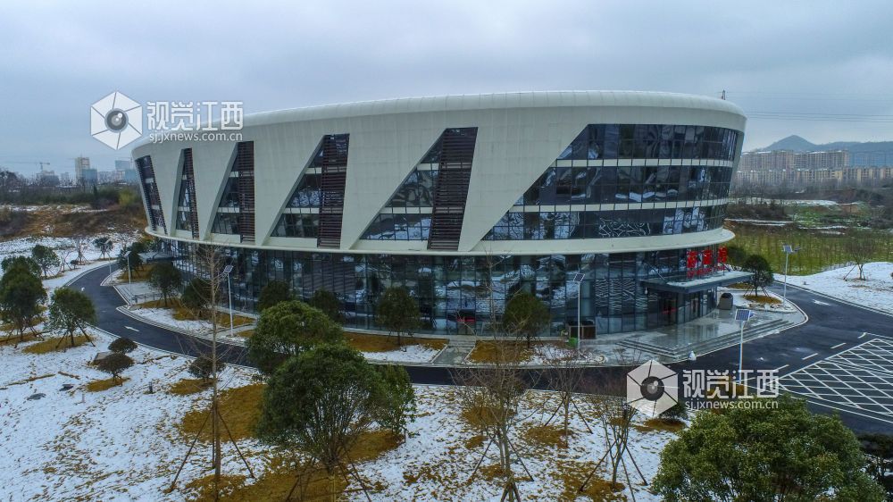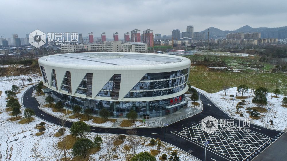 2022年2月8日,大雪过后,江西省湖口县游泳馆美不胜收。江西省第十六届省运会将于2022年10月在九江举行,湖口县设分赛场,主要承办省运会游泳项目相关赛事。
