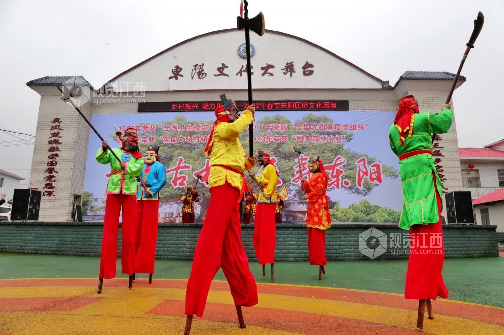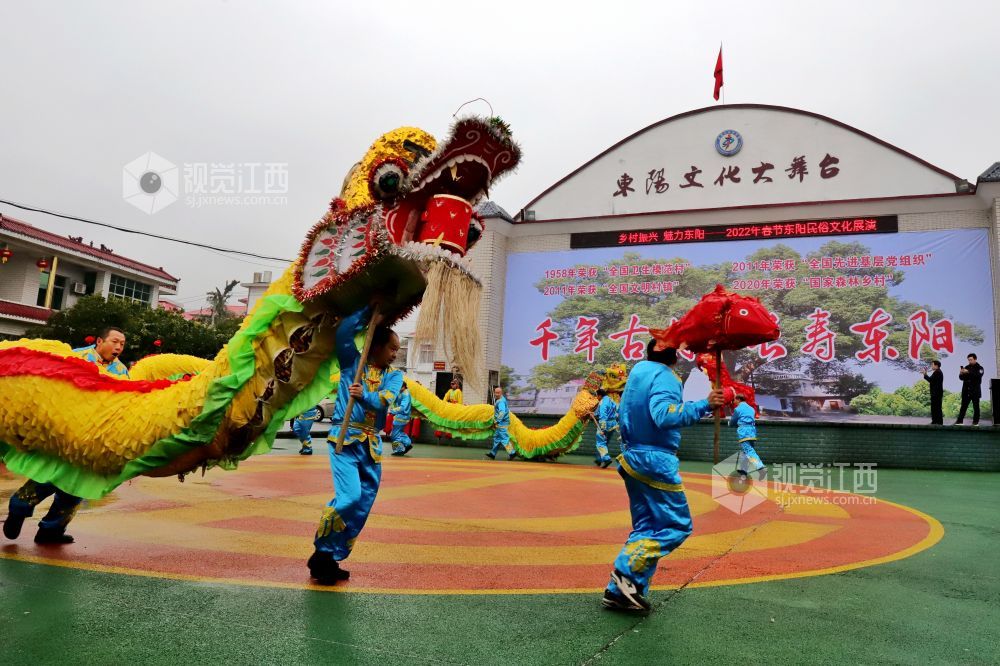 2022年2月8日,江西省萍乡市芦溪县芦溪镇组织新乡贤人士在东阳文化大舞台开展 “2022年民俗文化展演”活动,耍龙灯、踩高跷、茶花灯等丰富多彩的民俗文化节目集中展演,热热闹闹欢庆新春。