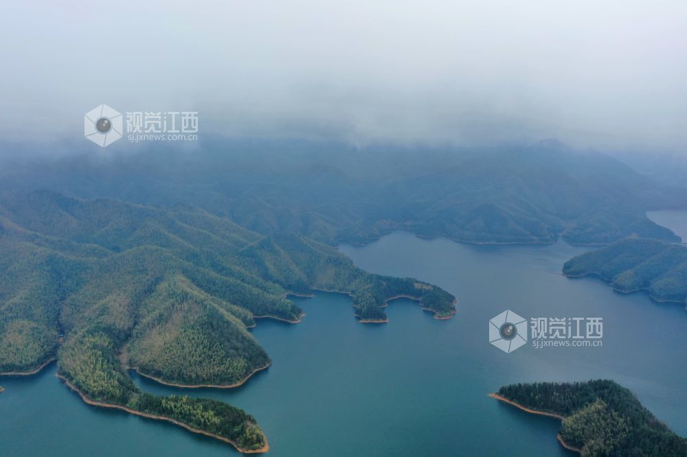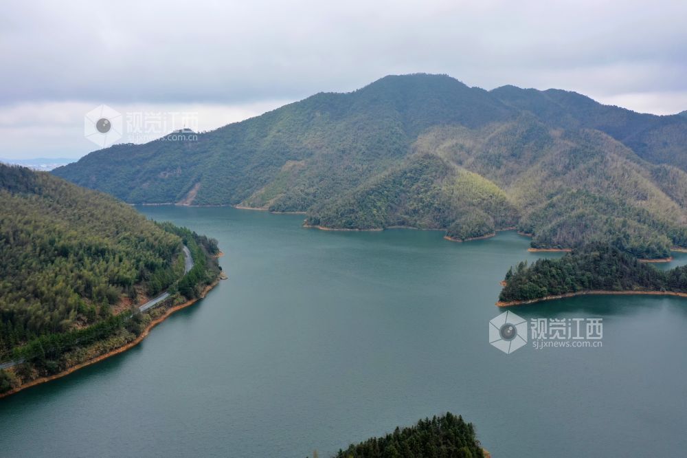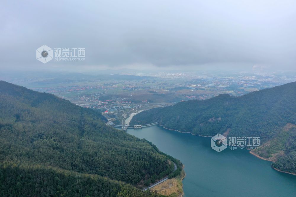 2022年2月9日,无人机航拍江西省萍乡市芦溪县山口岩水库美景如画。