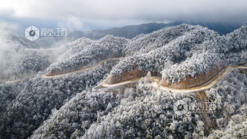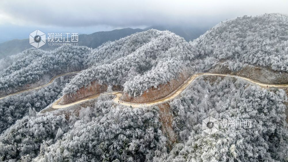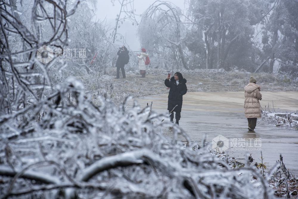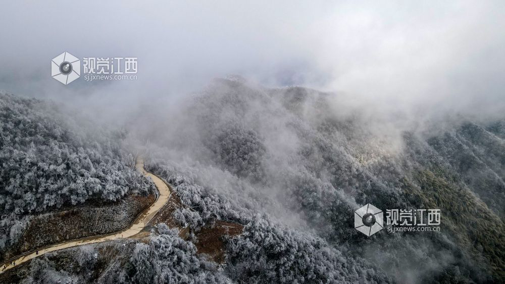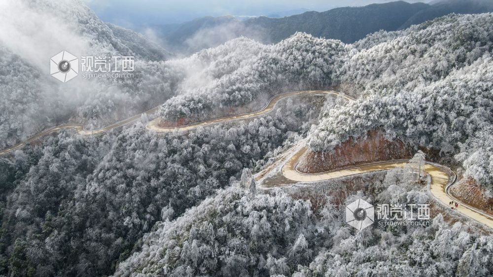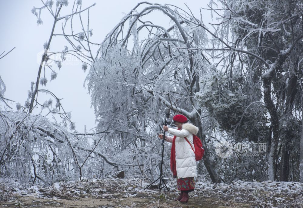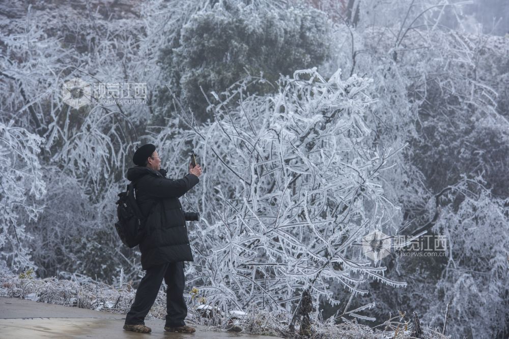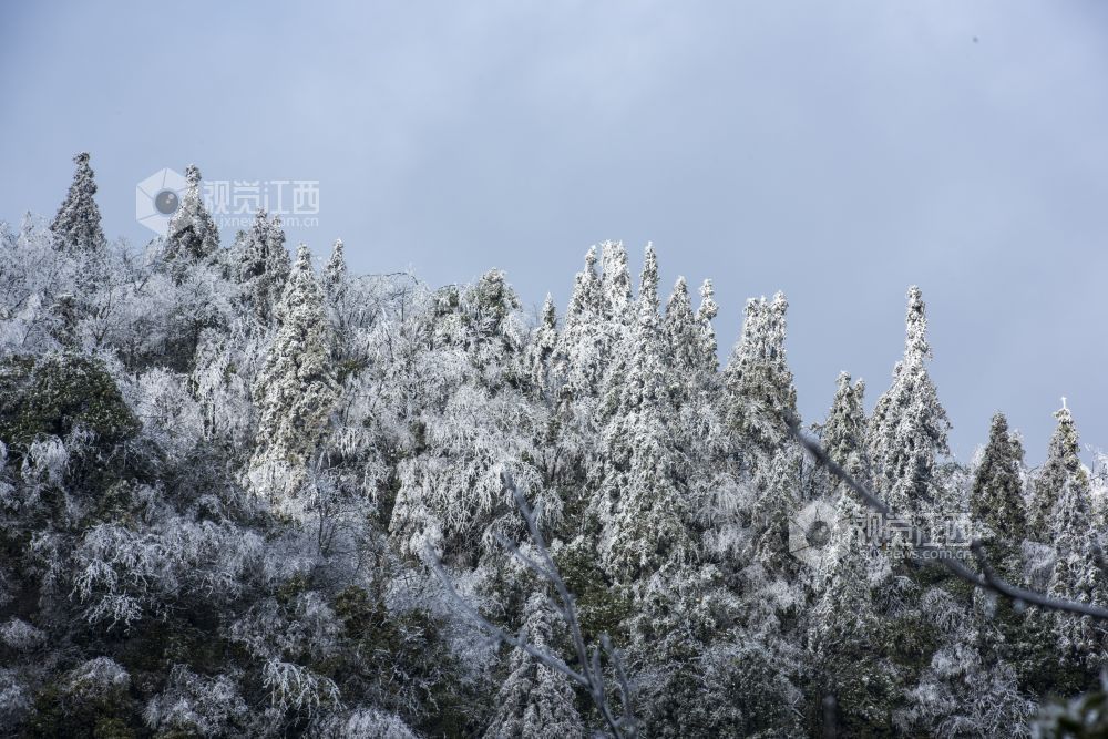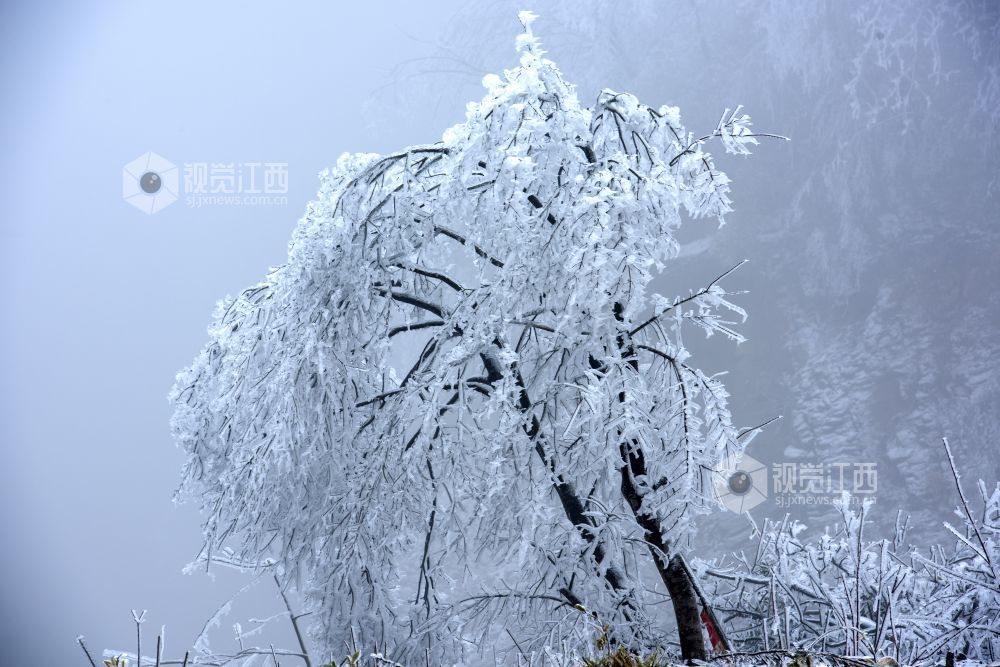 2月9日,受冷空气影响,江西省新余市大岗山海拔1091.8米主峰呈现冰棱雾淞美景,整个山顶上变成银装素裹,美不胜收。