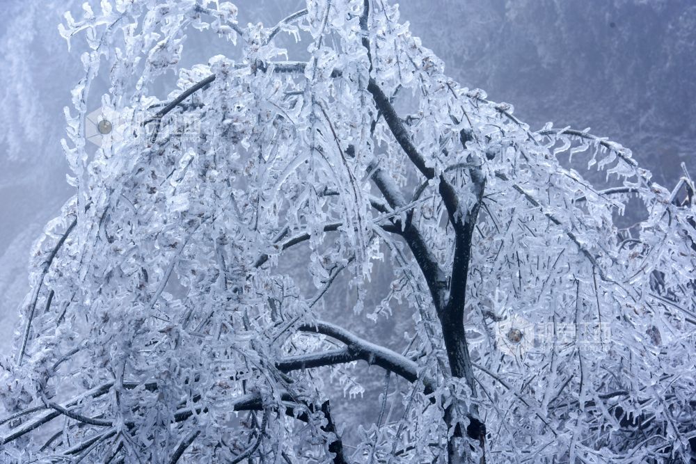 满漫山遍野的冰棱晶莹剔透,挂满枝头,仿佛一串串水晶,风吹树动,哗哗作响,摇曳生姿,好一派北国风情,给大岗山增添了一道亮丽的风景,吸引不少游客和摄影爱好者前来游玩。