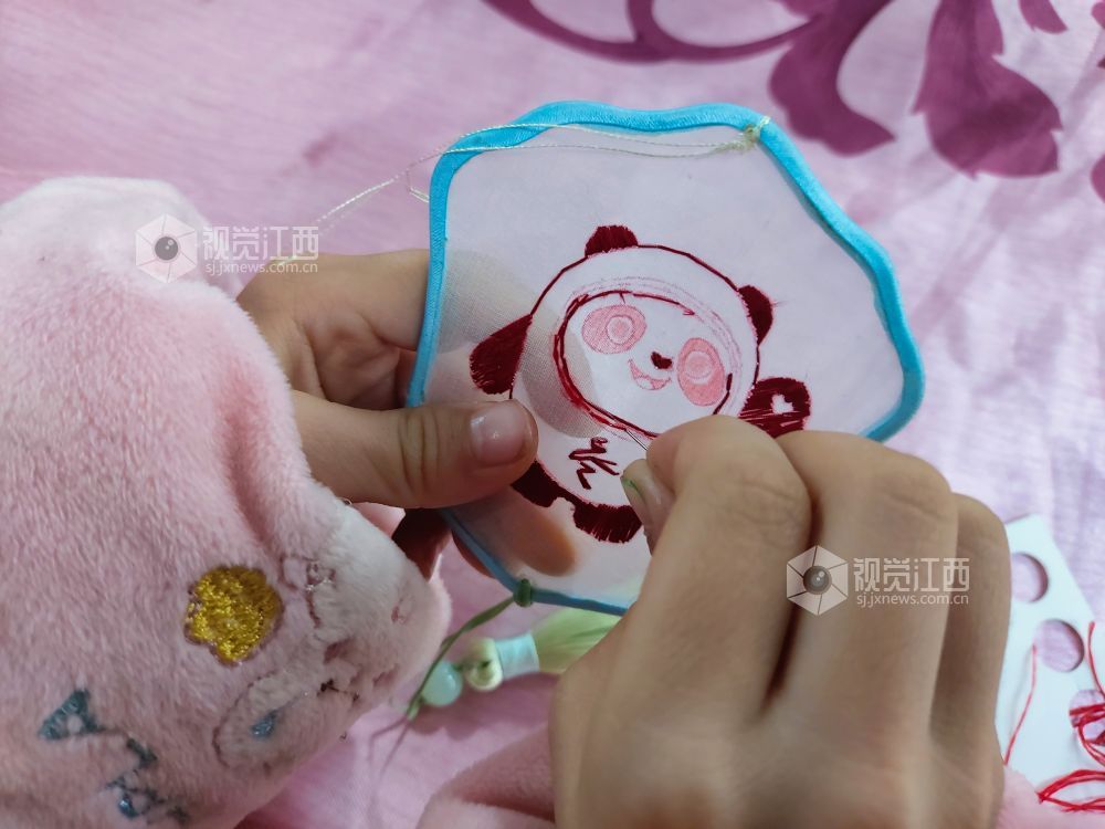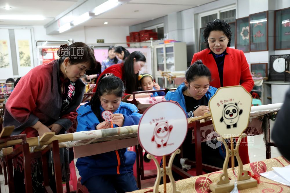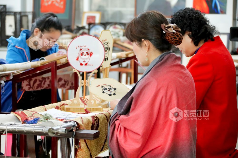 早春二月,北京冬奥赛事正酣,江西省级非遗豫章绣的第八代传承人余正连和周南英在南昌市豫章绣坊和学员们一起聚精会神地绣制可爱生动的冬奥会吉祥物作品,为冬奥加油祝福。