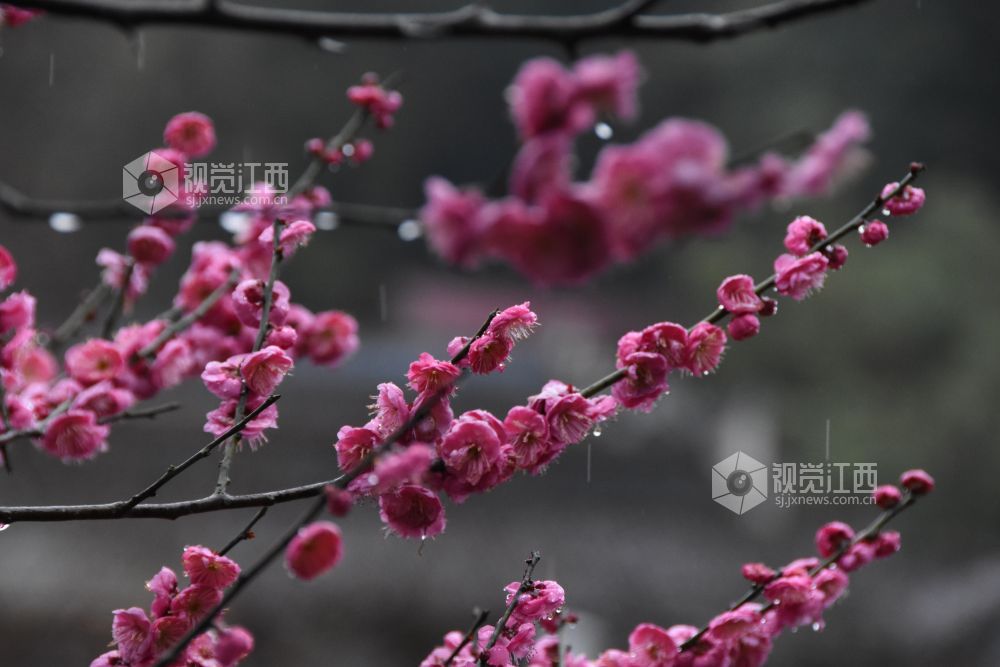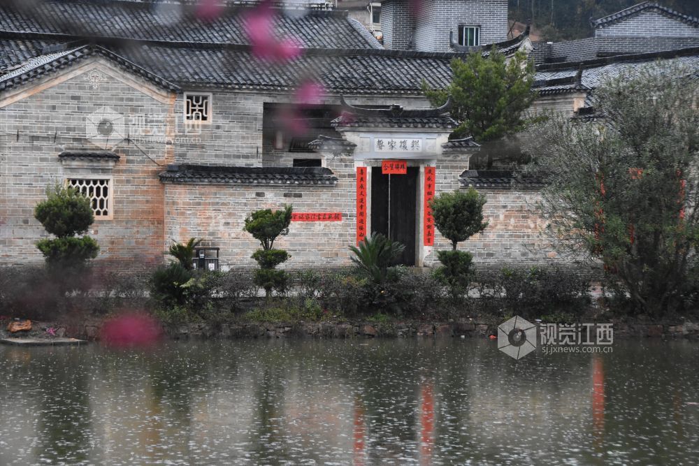 2022年2月13日,正值梅花盛开的季节,江西赣州白鹭古村矗立在细雨中,别有一番韵味。