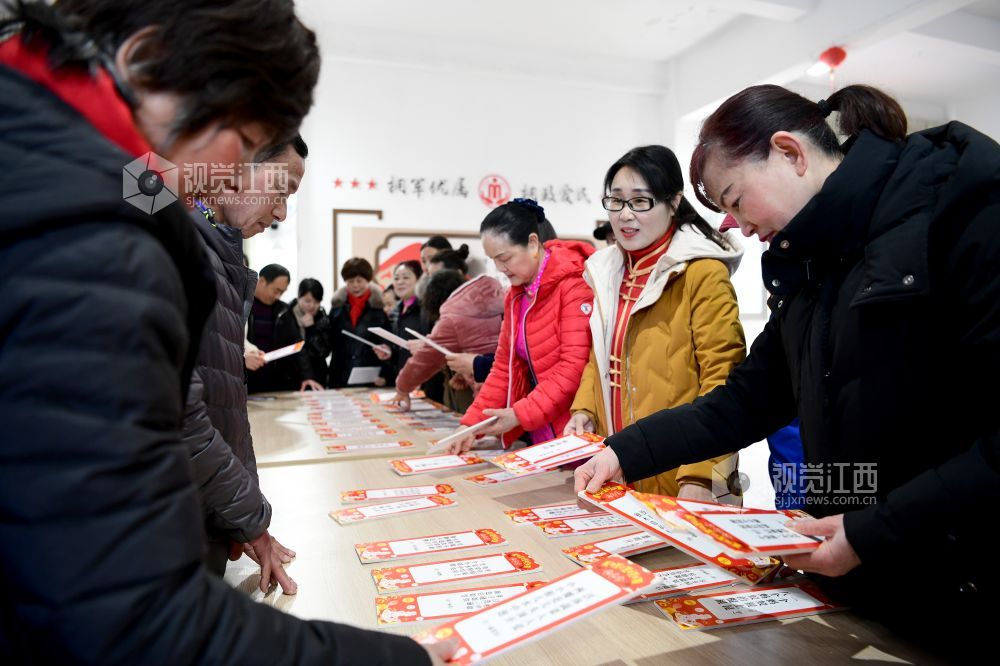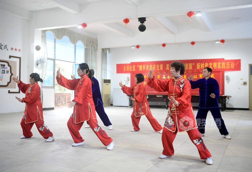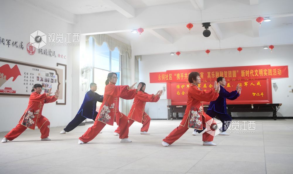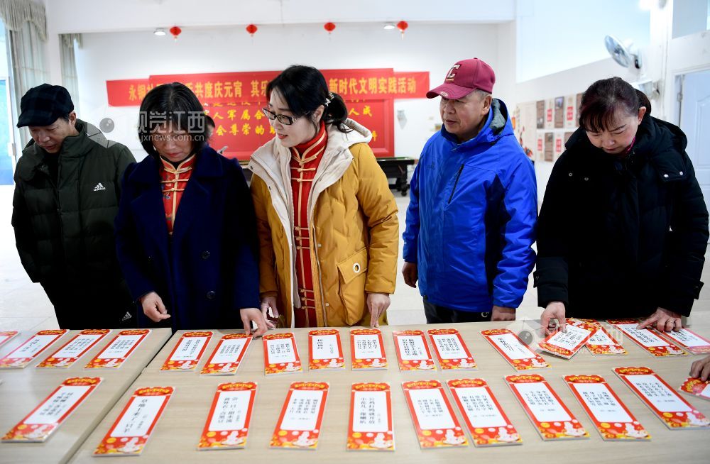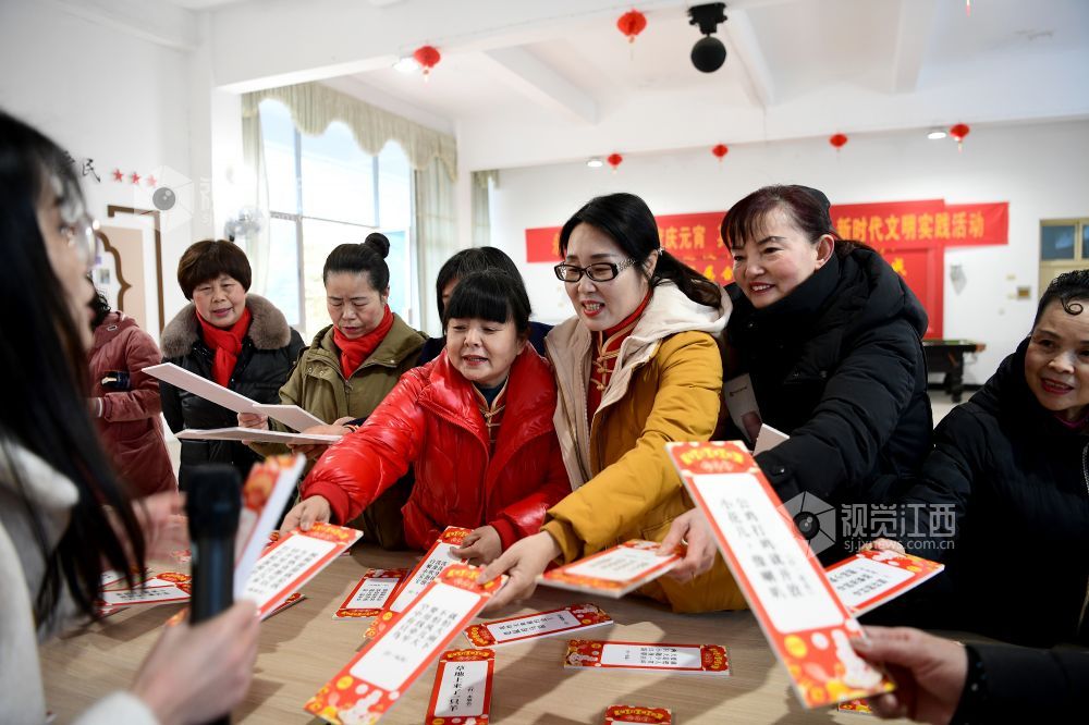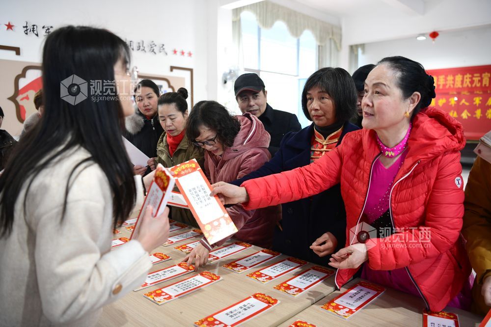 2022年2月14日,在江西省上饶市铅山县永平镇永铜社区新时代文明实践站,居民载歌载舞喜迎元宵佳节。