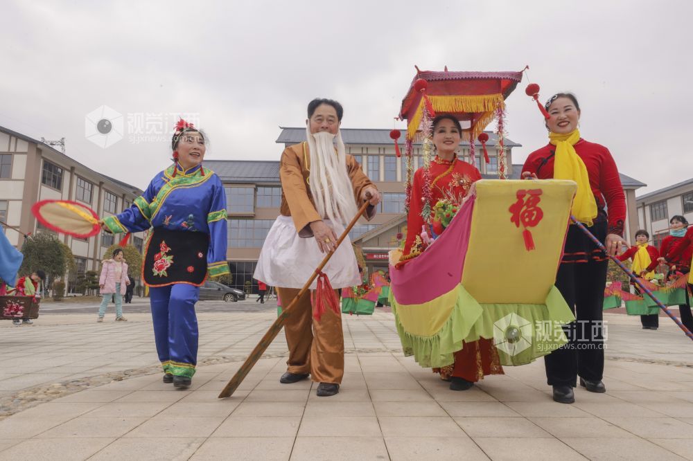 2月14日,江西省湖口县老科协组织民间灯彩艺术团来到该县流芳豆文化产业园,与当地群众一起迎新春闹元宵,弘扬传统文化,丰富百姓的精神生活。演出的打蚌壳、采莲船、挑花篮、打莲箫、独轮车等县级非遗文艺节目,具有浓厚的生活气息,深受观众喜爱。