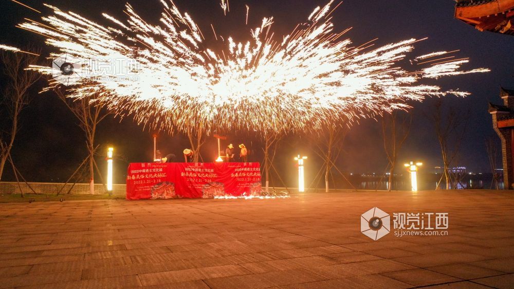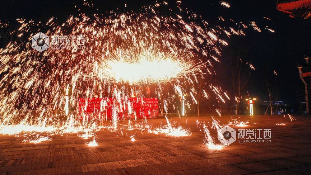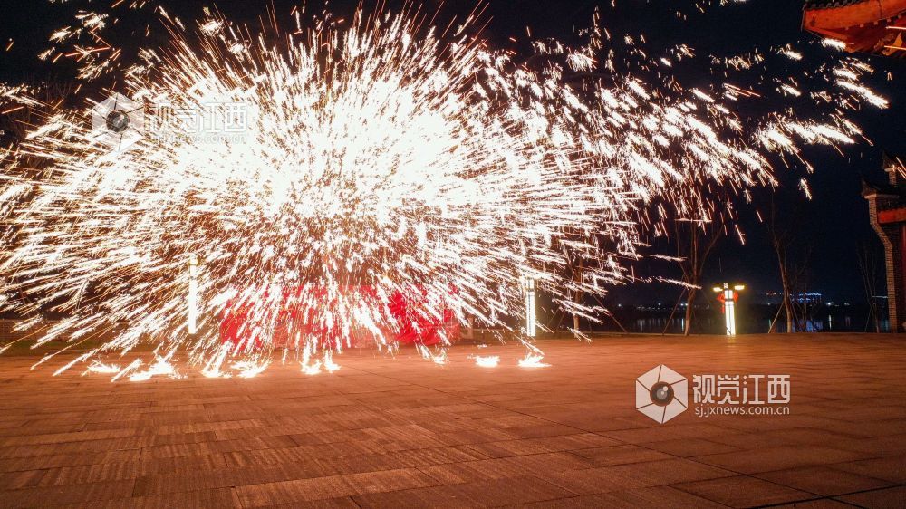 春节过后,江西省吉安市吉水县进士文化园开展打铁花、舞龙灯、猜灯谜等传统民俗活动,喜迎元宵佳节。