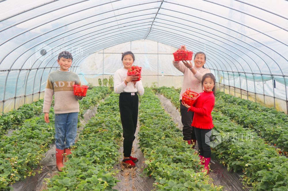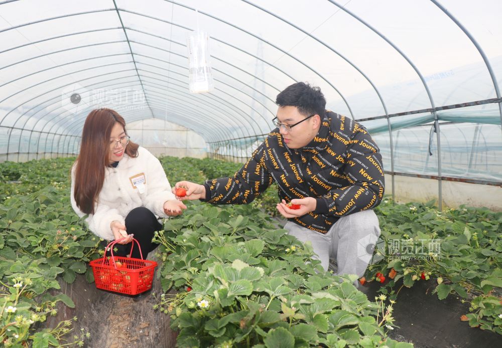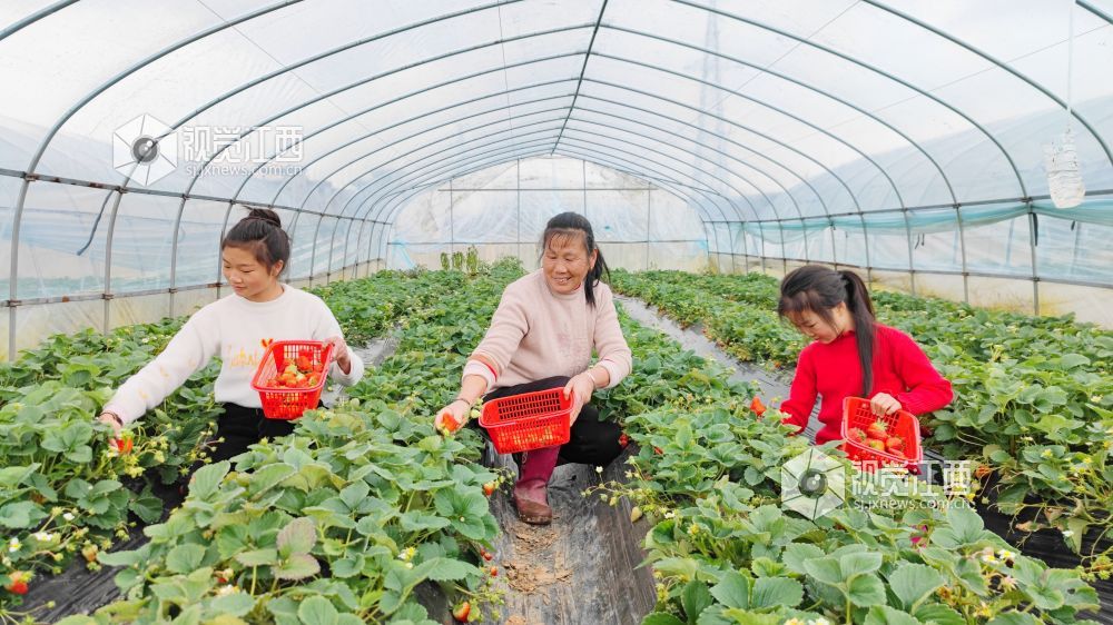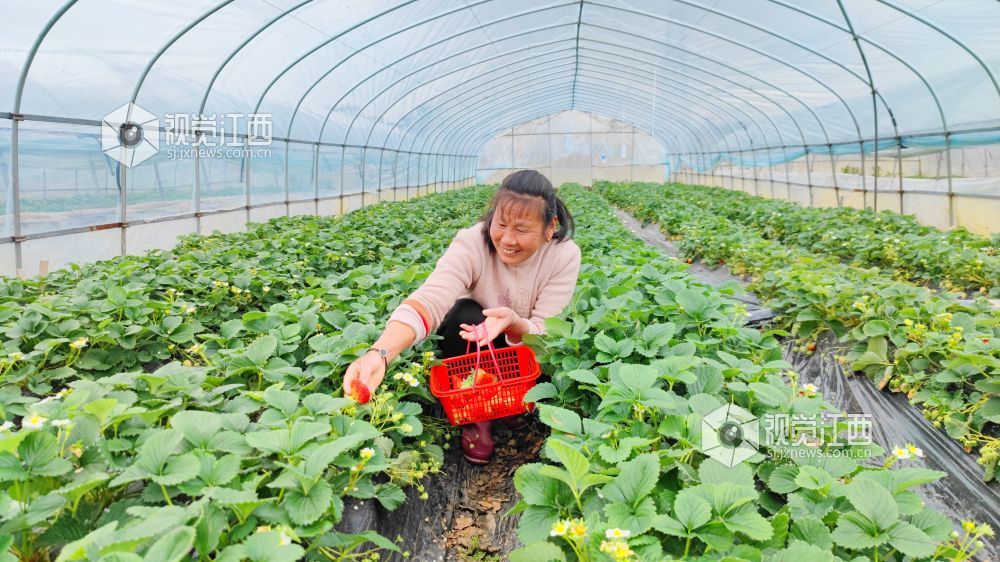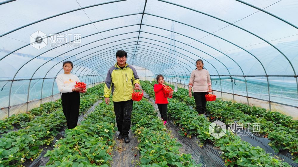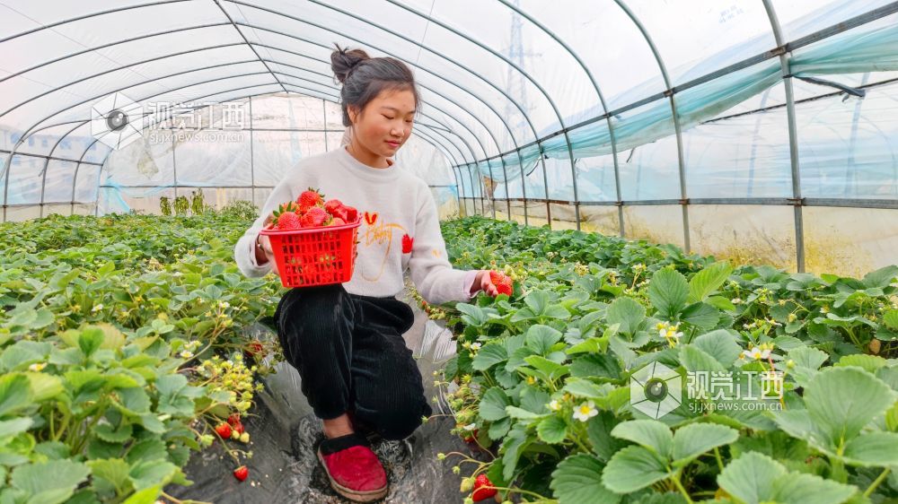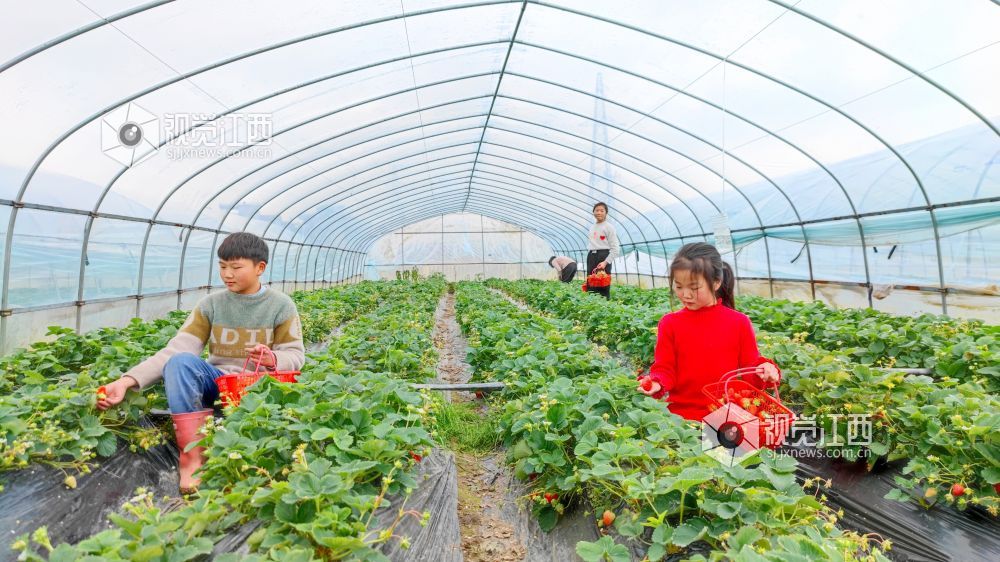 2月15日,在江西省余干县乌泥镇铜鼓包村草莓种植园内,一颗颗鲜红饱满的草莓香甜诱人,吸引了不少游客前来体验采摘,享受田园采摘乐趣。