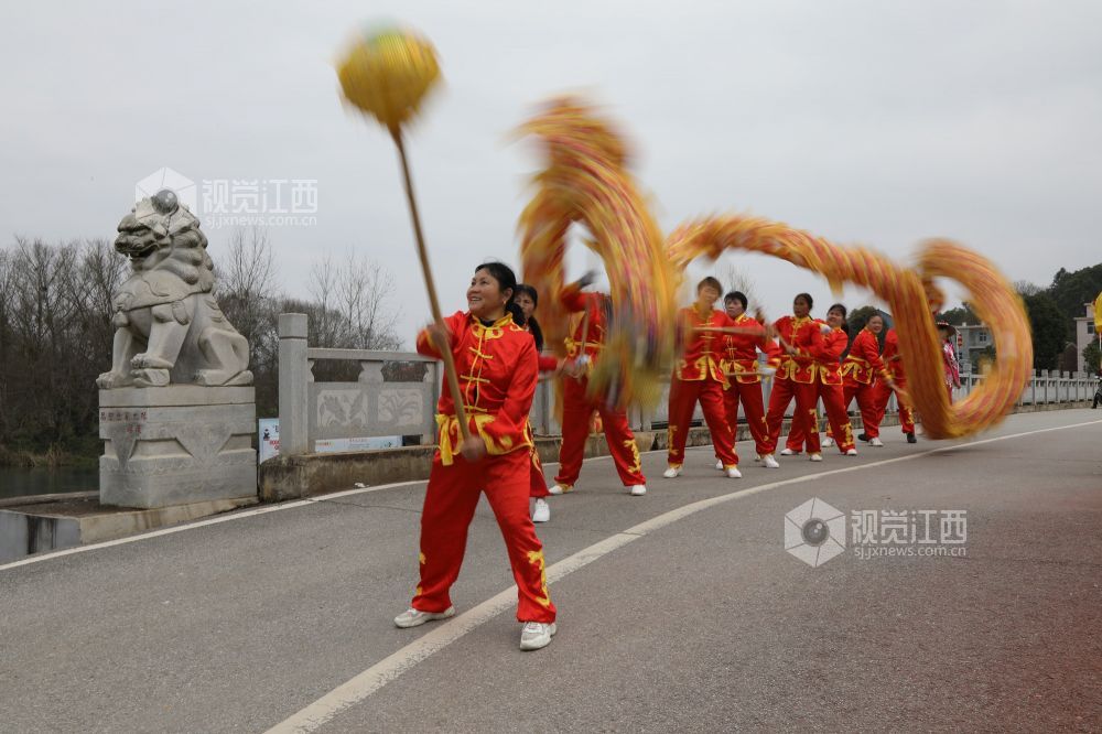2月15日,江西省莲花县琴亭镇金家村的女子龙灯队在该村的文化中心和文化广场,举行舞龙表演,喜迎元宵佳节。