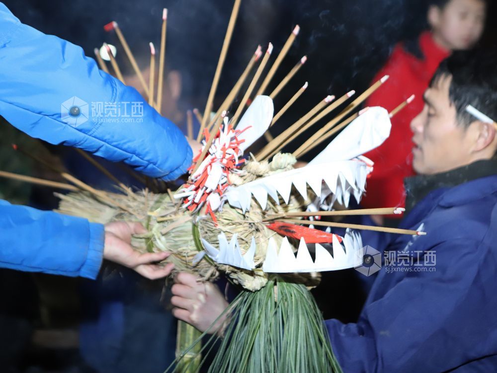 2月15日晚,江西省泰和县中龙乡百记村举办了一场具有乡土气息的龙灯晚会,一条由稻草编织的香火龙随着振奋人心的锣鼓声舞动,时而辗转腾挪、上下翻飞;时而蛟龙出海、腾飞云霄;时而翘首盘踞、气势夺人。在爆竹声中,中国年气氛显得格外浓郁。