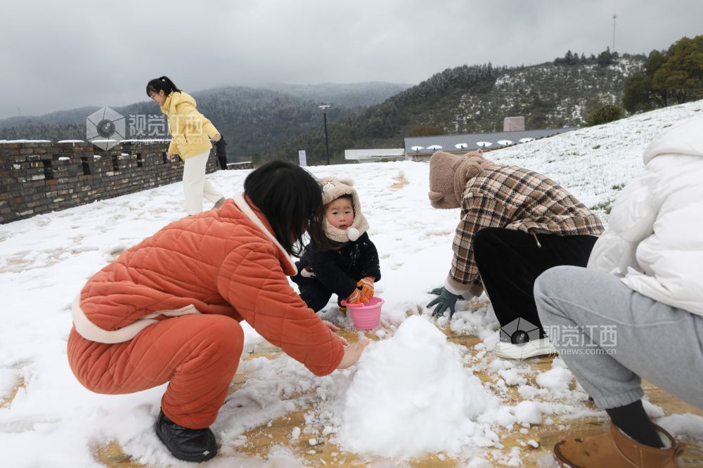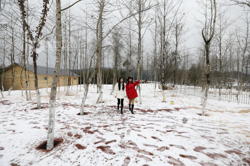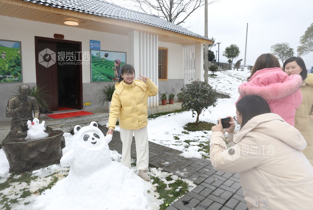 2月23日,江西省莲花县坊楼镇初心甘红茶园风景区,大雪后,显得格外美丽。市民纷纷来到茶园赏雪游玩,拍照留影。