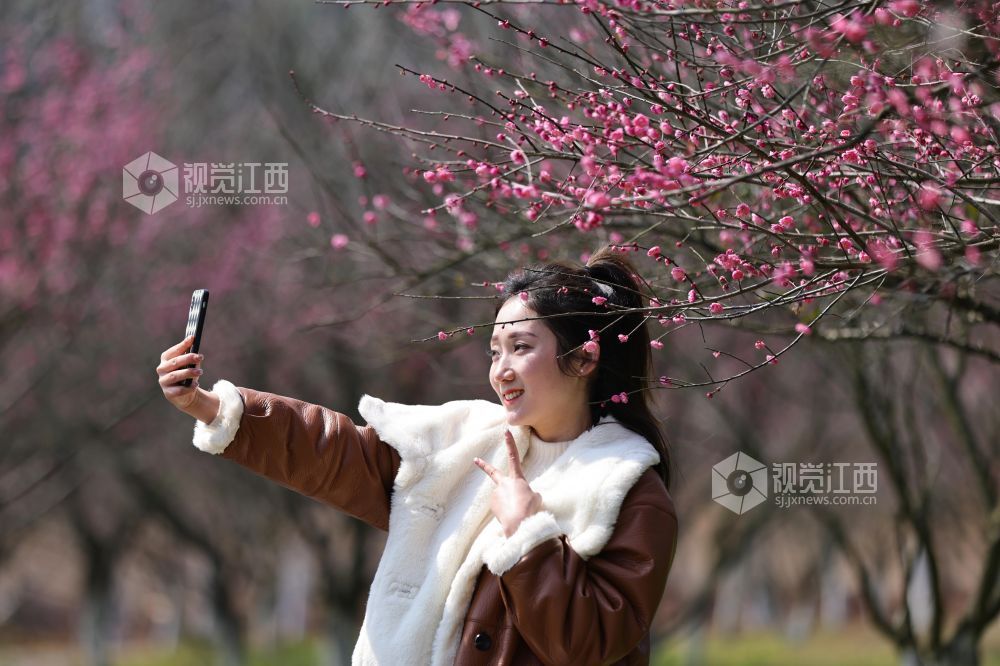 2月24日,一场大雪过后,迎来了久违的阳光,位于江西省南昌市凤凰沟的梅花竞相绽放,嫩黄娇艳的蜡梅花点缀枝头,红梅粉梅争相吐蕊迎春绽放。不少游客慕名而来,尽情地徜徉在花海中,闻花香、拍美照,十分惬意。