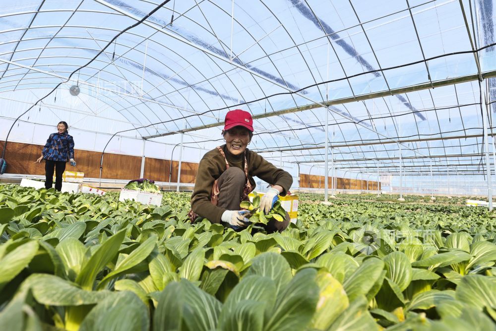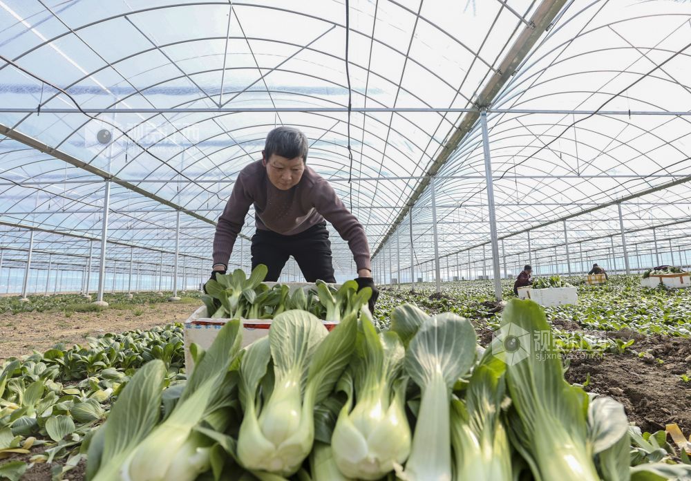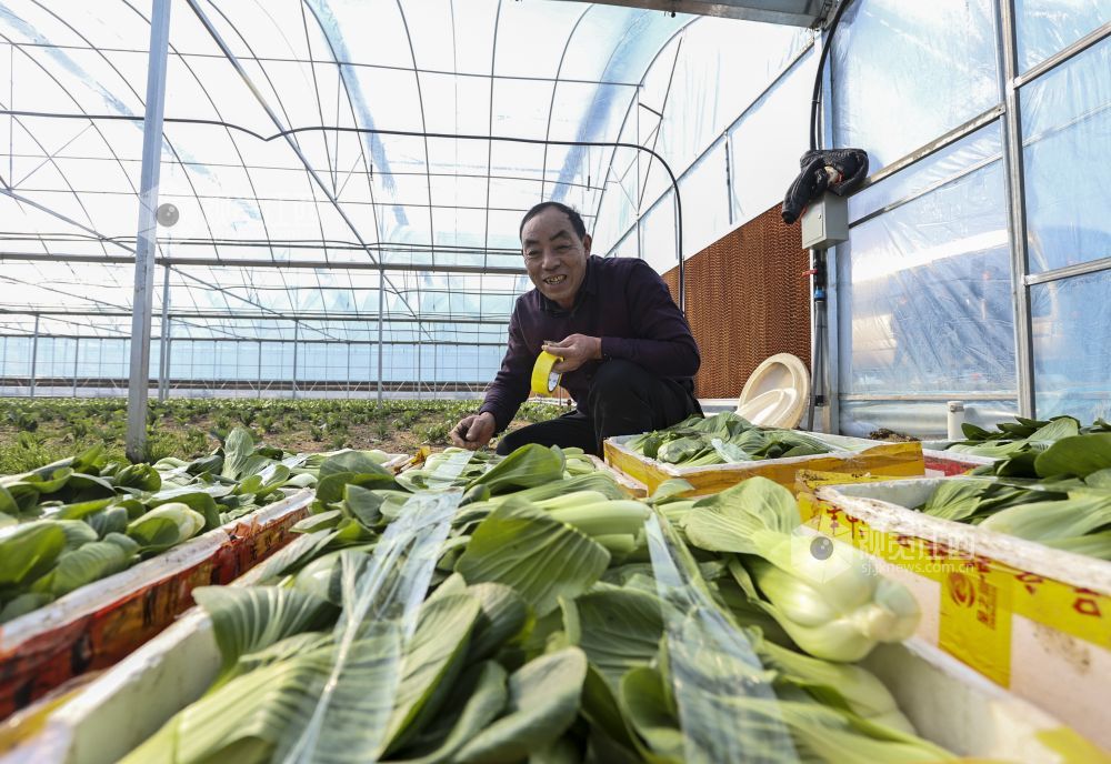 2月27日,在江西省湖口县均桥镇连村设施蔬菜大棚基地,菜农们抢抓市场有利时机,收获大棚蔬菜,效益可观。