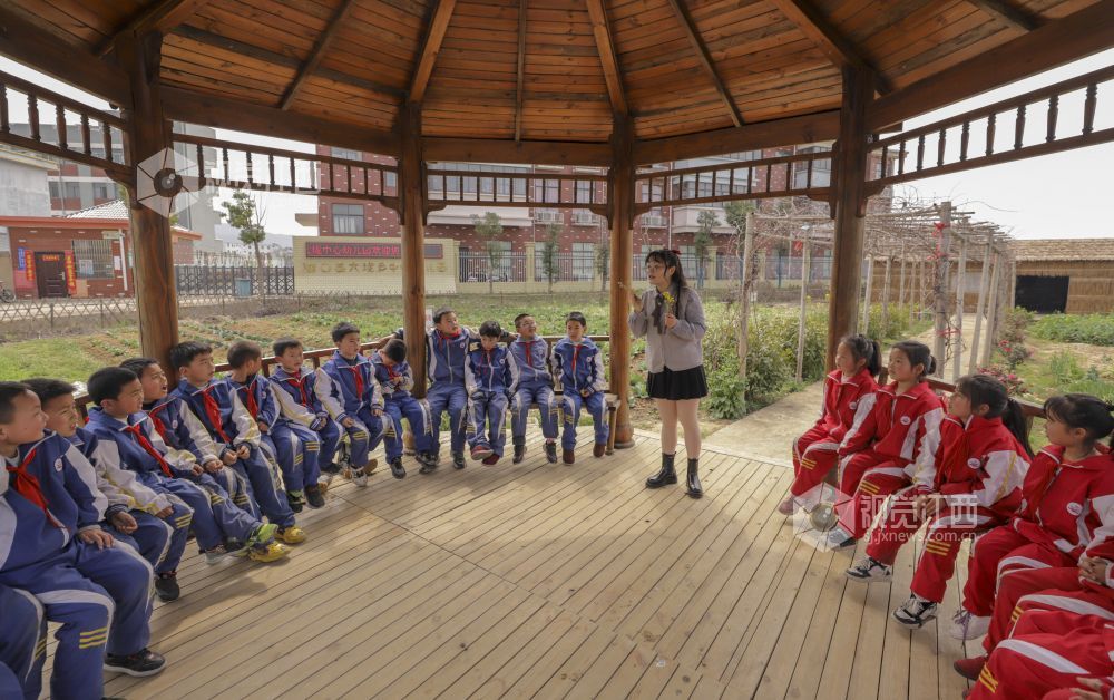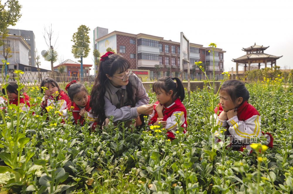 2022年3月3日,江西省湖口县大垅乡小学的二年级学生走进学校劳动实践基地,感受春暖花开的美丽,在老师的指导下领悟传承农耕文明。