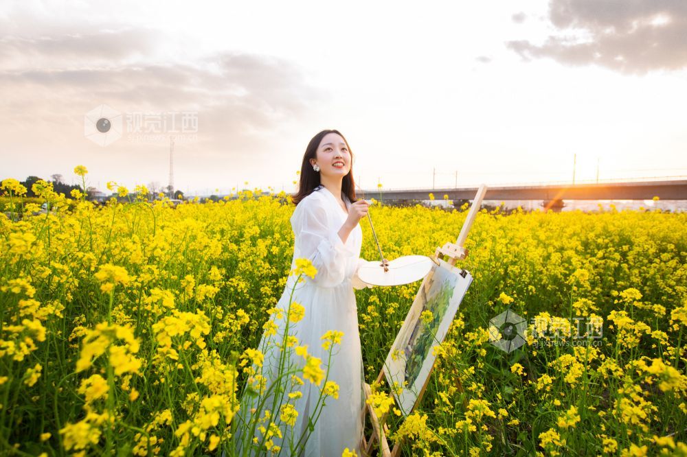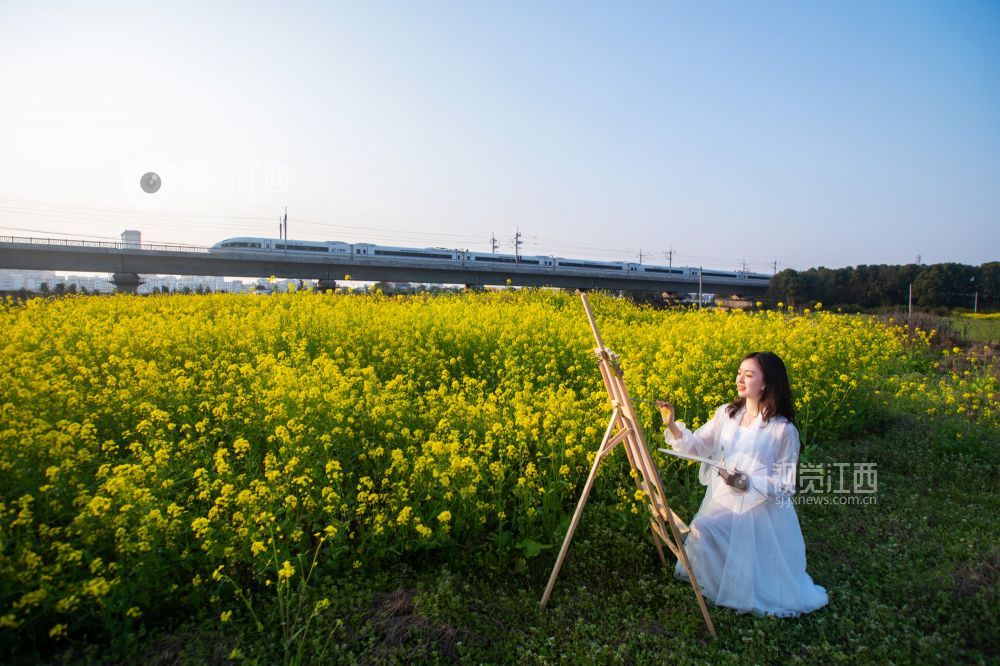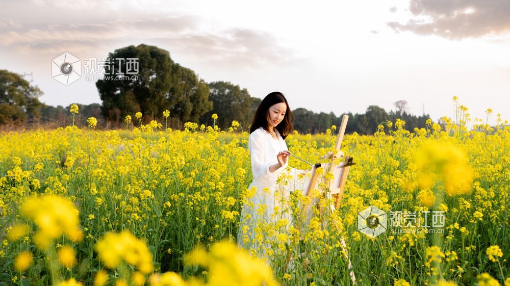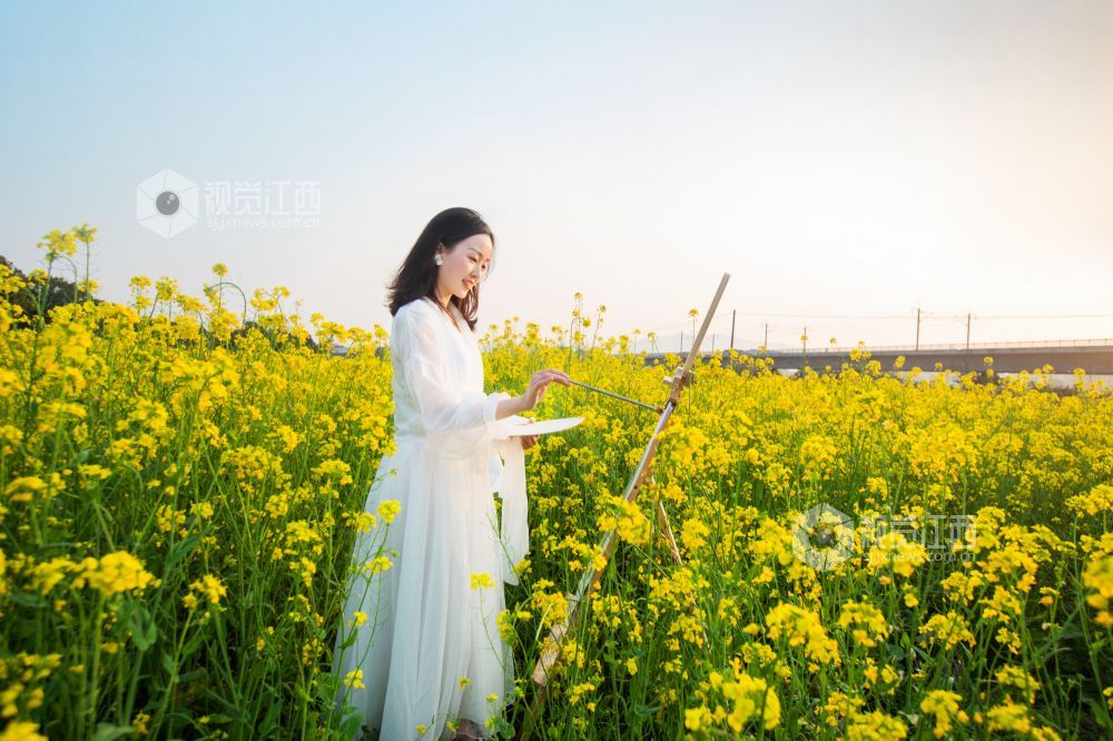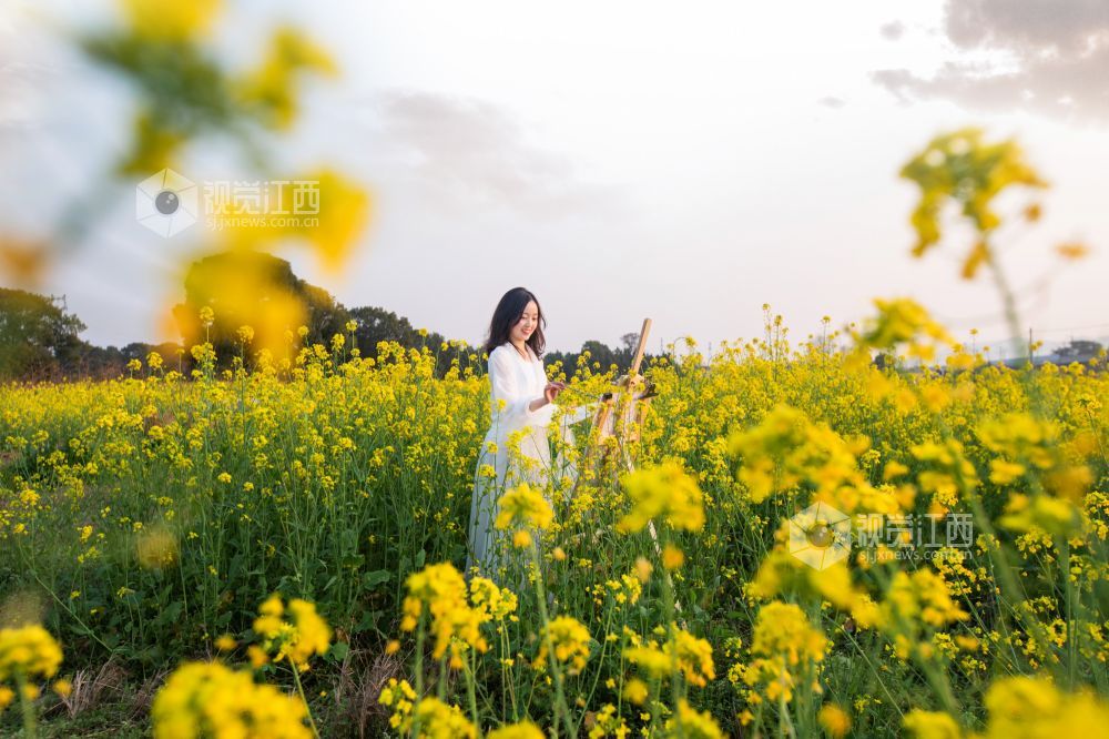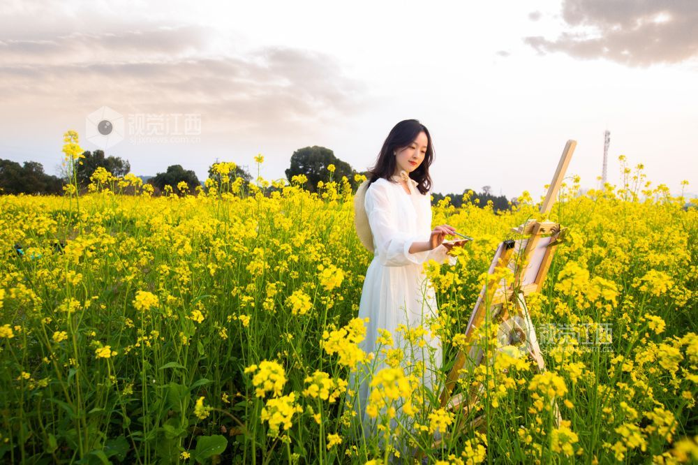 阳春三月,百花盛开,江西省峡江县水边镇佩贝村的油菜花开正浓,秀丽的风光吸引了不少游客前去采风打卡。热爱生活的隽子老师利用当地丰富的油菜花资源,在田间地头,以“亲近自然 感受春天”为主题进行写生。她在花的海洋中沐浴春光,在油菜花田间绘画春天,不但开拓了视野,而且感受到春天的美好。