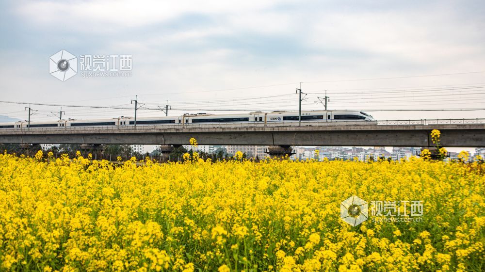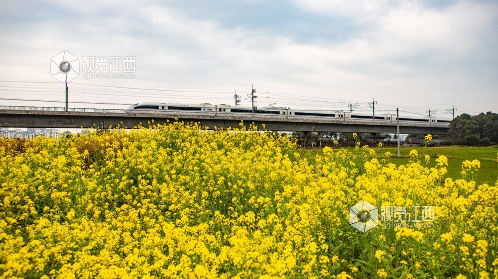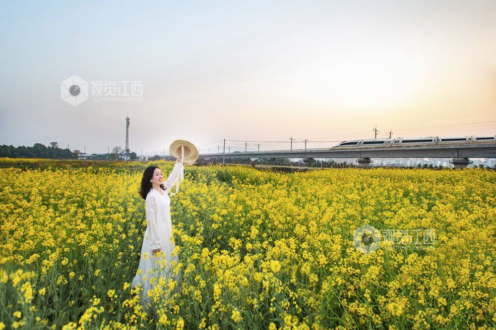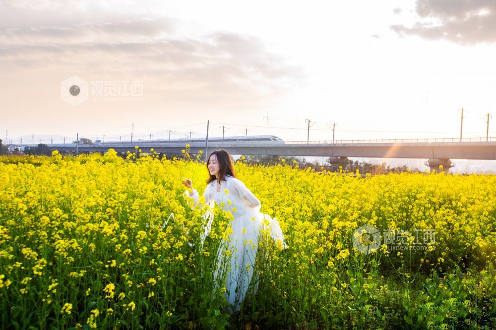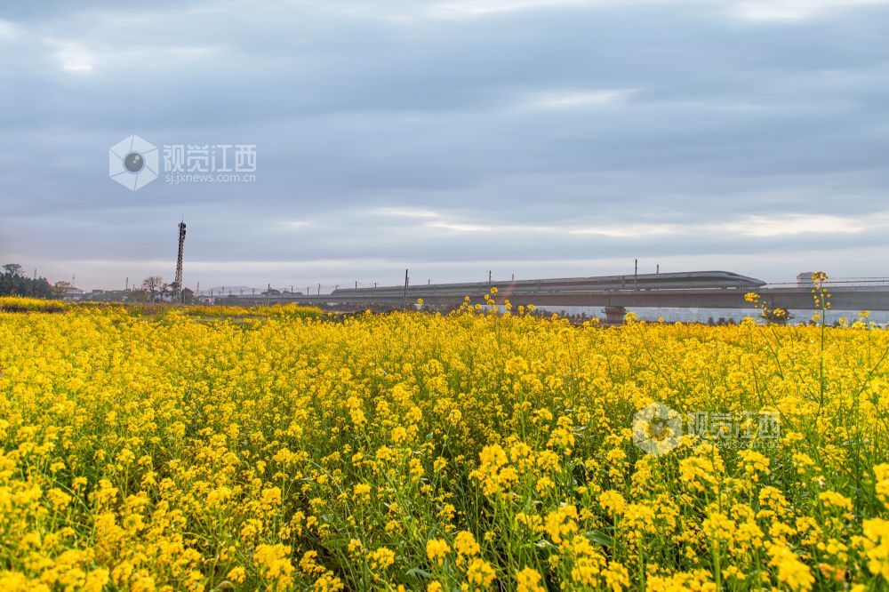 微风过处,泛起一片涟漪,仿佛黄色锦缎迎风飘拂,与古朴乡村、高铁交相辉映,构成了一幅清新典雅的田园风景,这里真是一个远离尘世的诗意花园。春日的油槐,万物复苏,田间的油菜花,迎着暖暖的春光,悄然绽放,不断的吐露芬芳。乡间的油菜花芳香四溢,美景如画,一簇一簇的油菜花将冷淡的色彩驱散,金色的海洋让人沉醉其间。