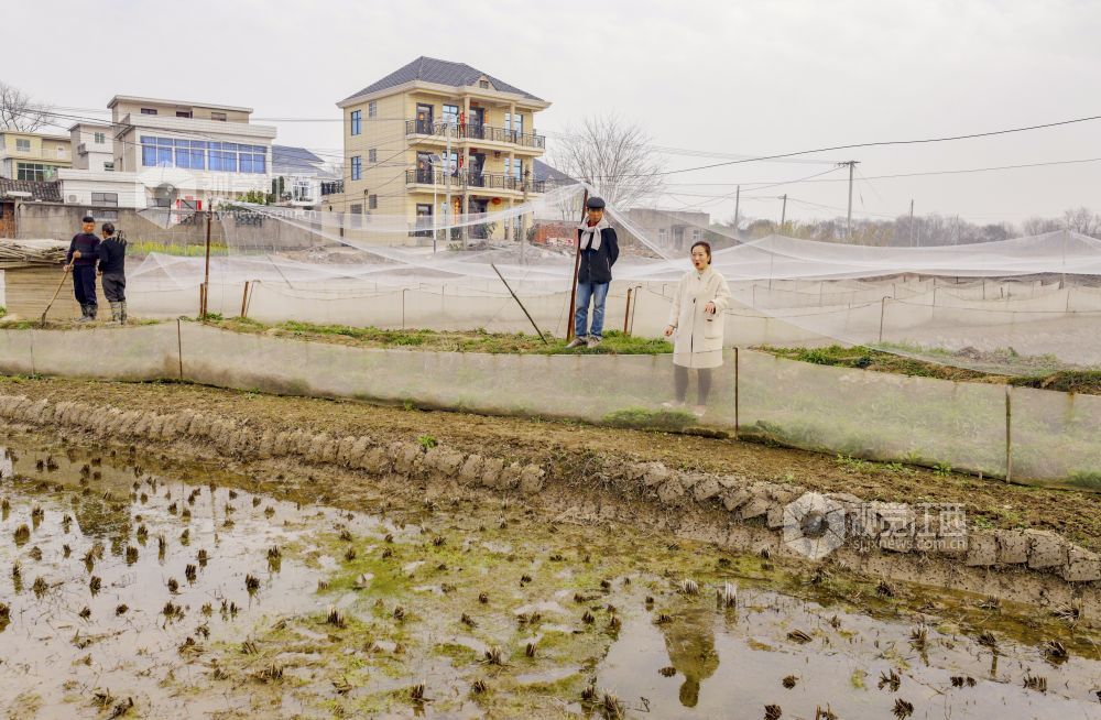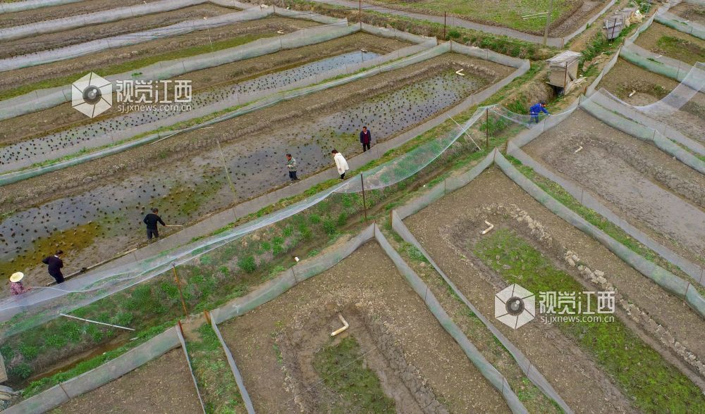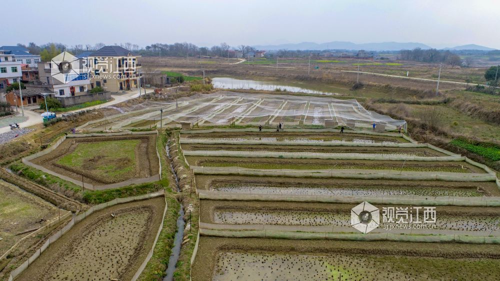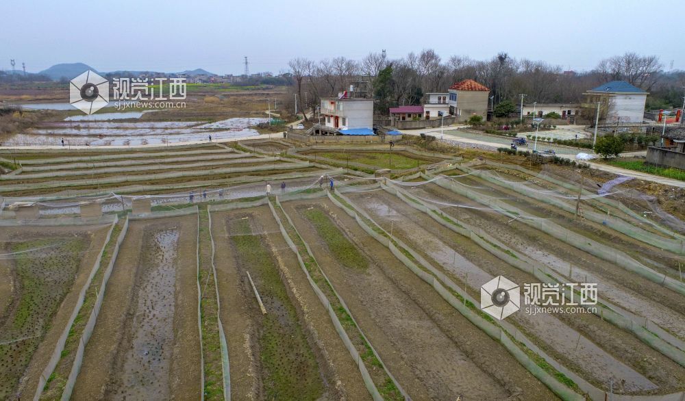 2022年3月3日,江西省湖口县城山镇东庄村村级集体经济稻蛙养殖基地,忙着清理沟渠、遮盖防护网,为青蛙产卵做好前期准备。