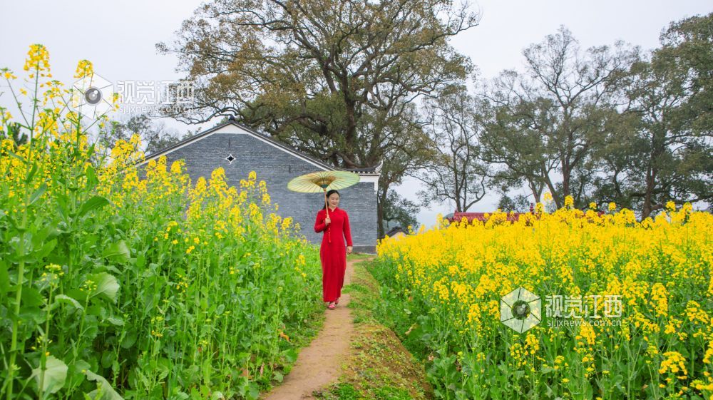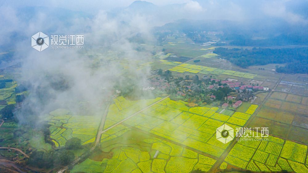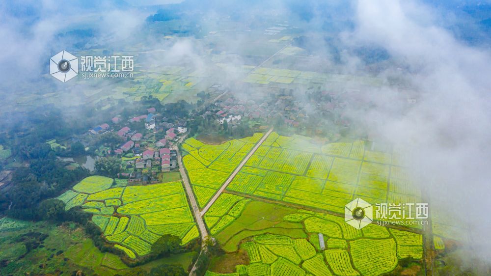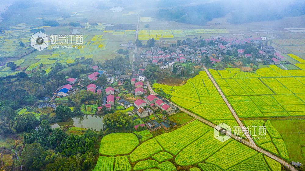 江西敖城:油菜花开春意浓 美丽乡村画卷映