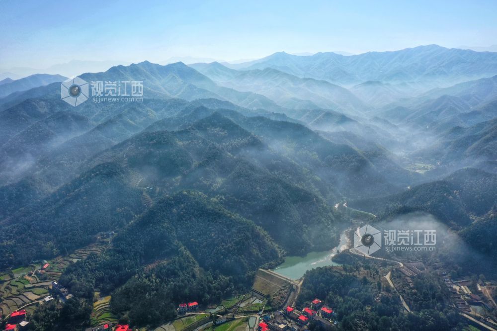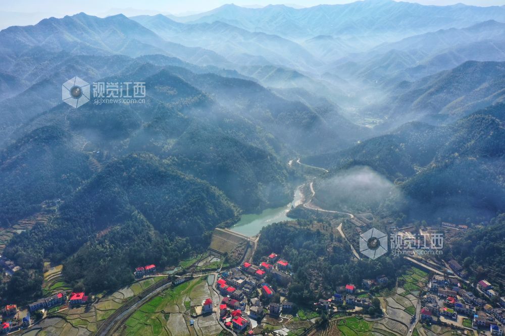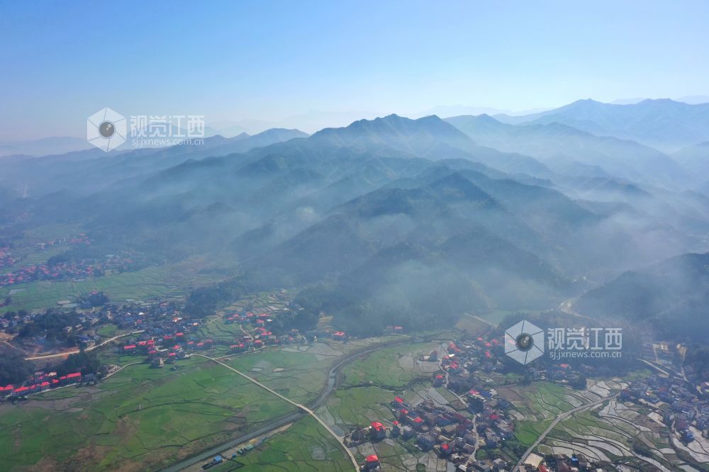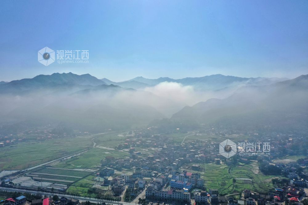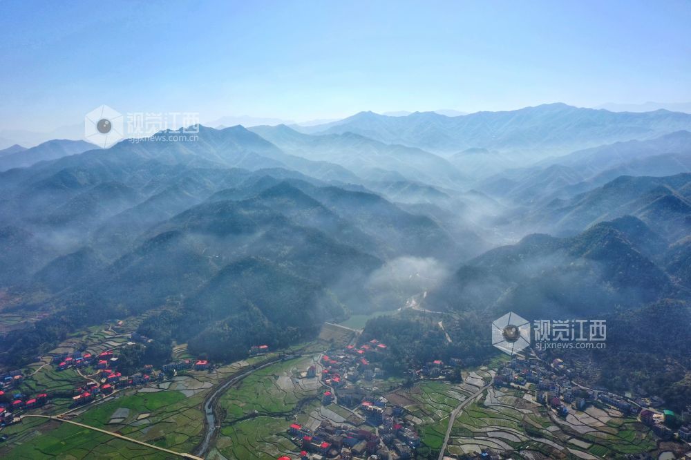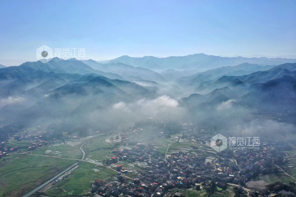 2022年3月8日,无人机航拍江西省萍乡市芦溪县高楼村被晨雾笼罩,在云雾间若隐若现,如梦似幻,美不胜收。