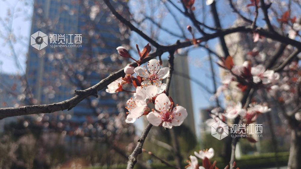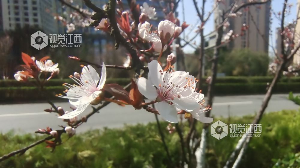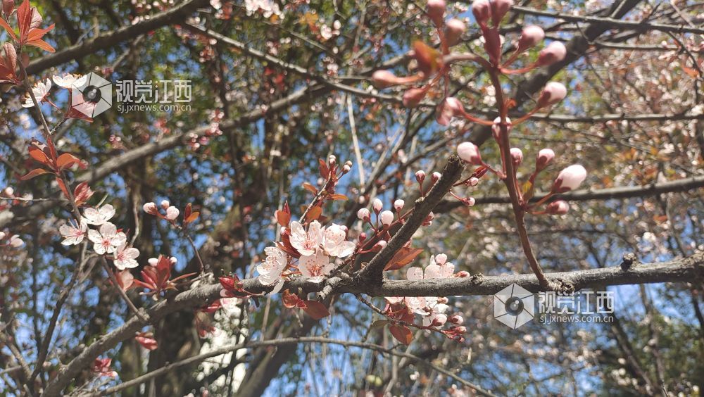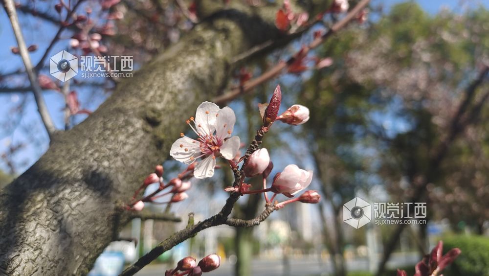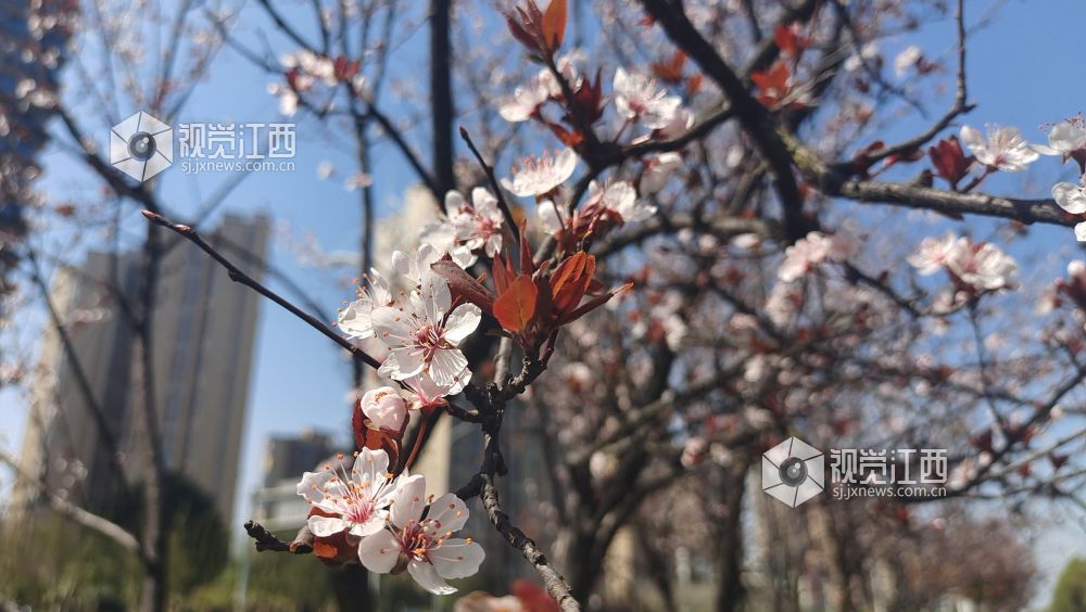 2022年3月8日,江西吉安城区的紫叶李花开灿烂,美如画卷。