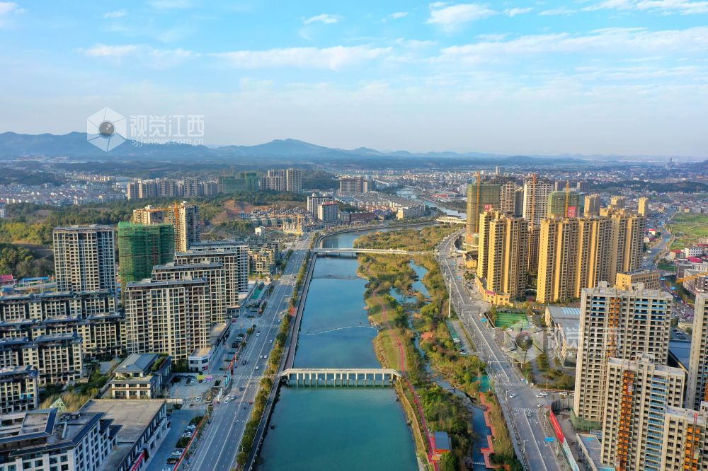 2022年3月9日,江西省萍乡市芦溪县迎来晴好天气,蓝天白云下的城市风景如画,景色宜人,令人心旷神怡。
