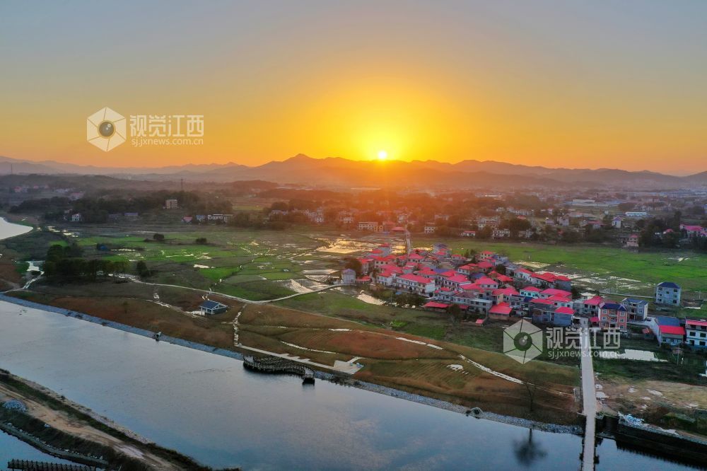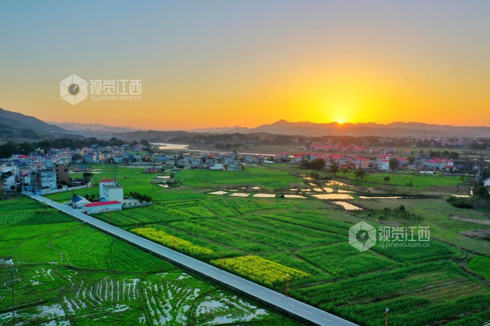 2022年3月8日,江西省萍乡市芦溪县芦溪镇山下村日落时分,天空中晚霞飘飞,美如画。
