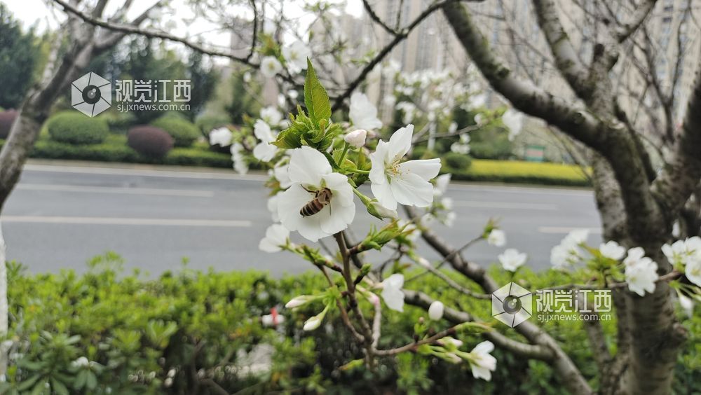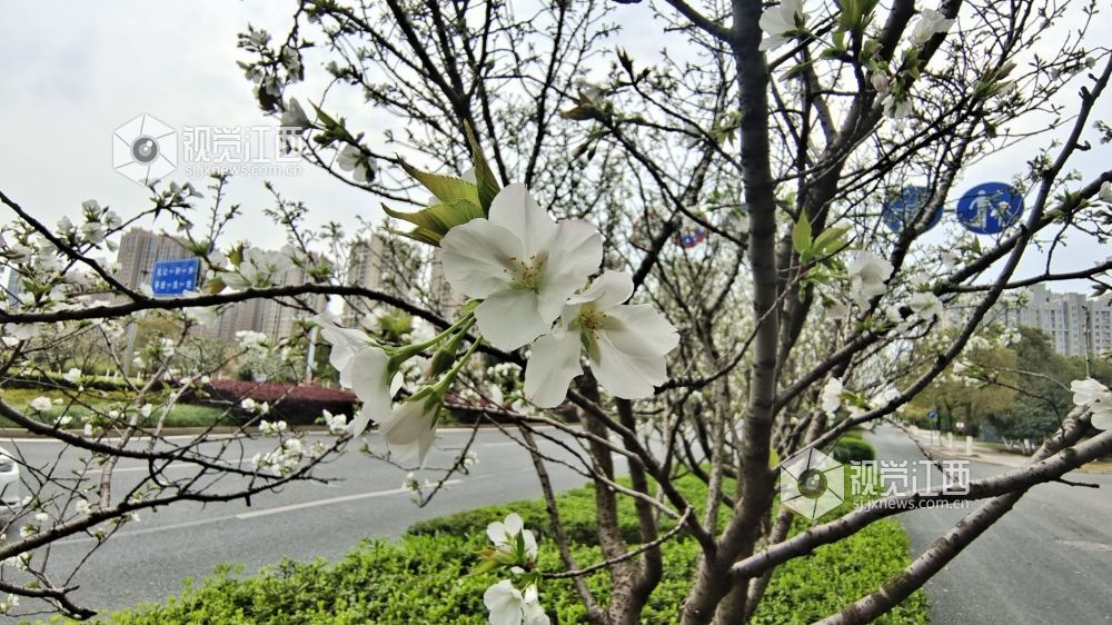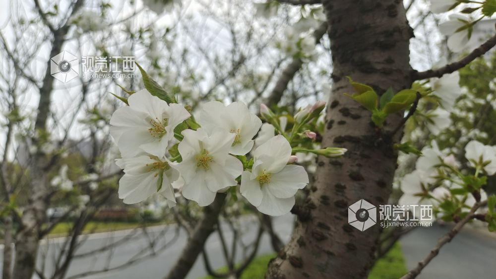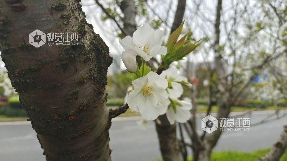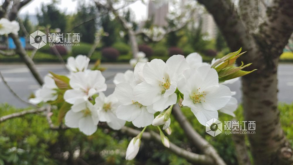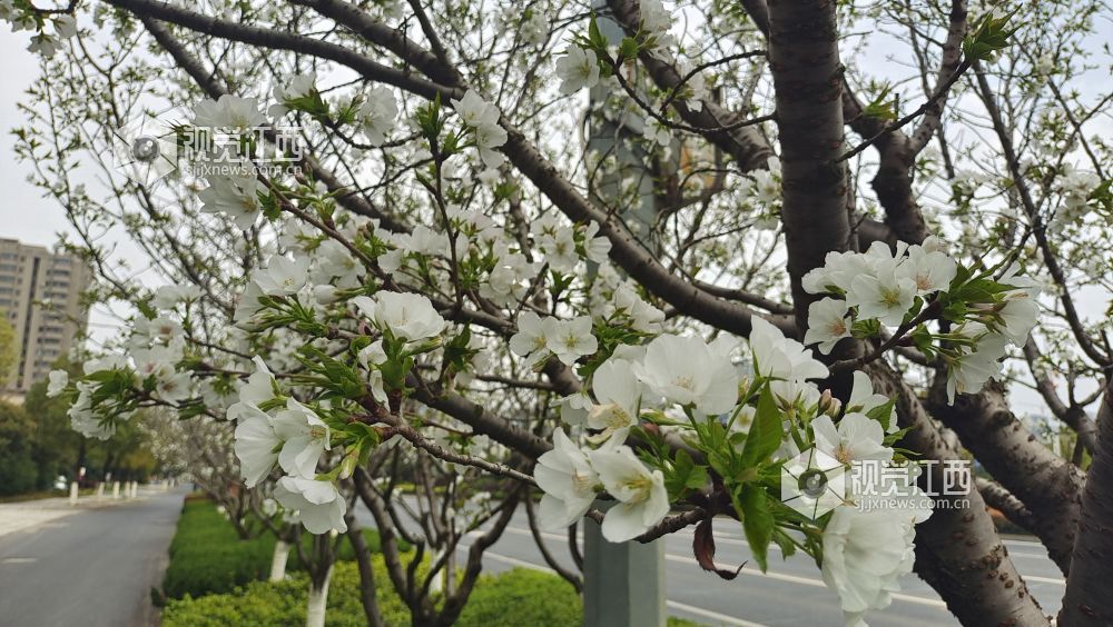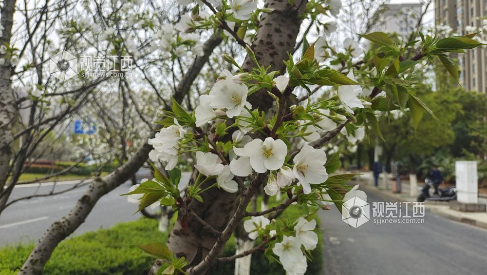 3月14日,江西吉安吉州大道的樱花浪漫绽放,花开灿烂,美不胜收。