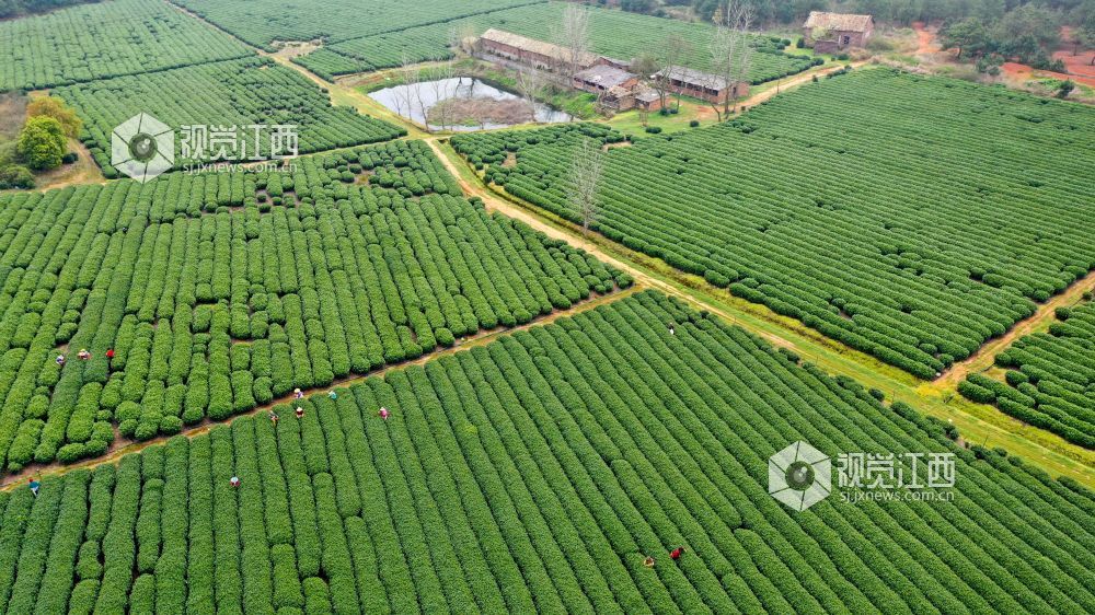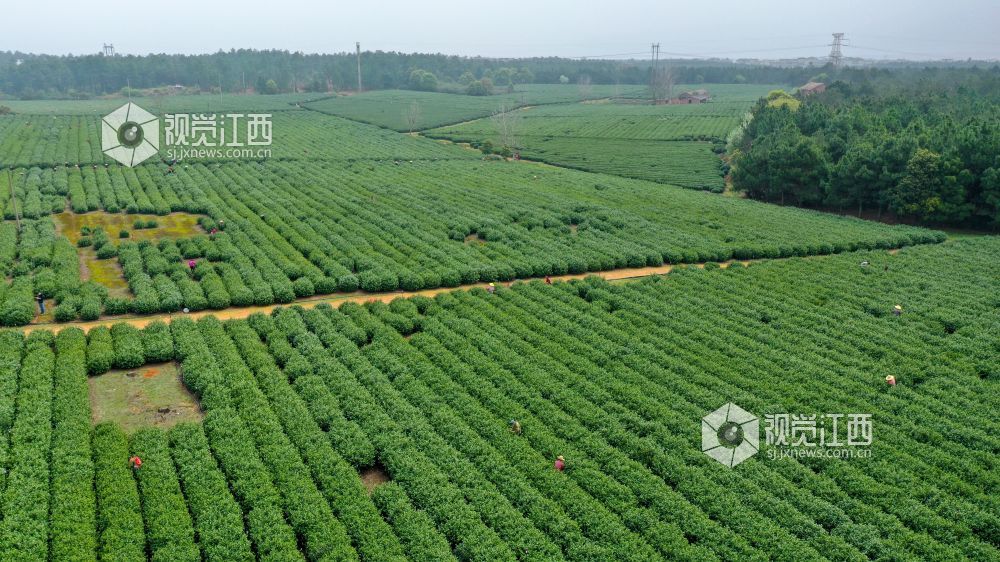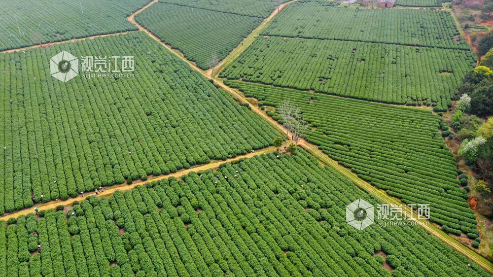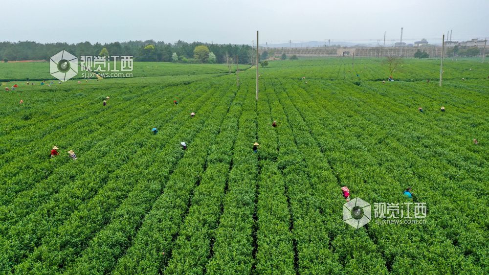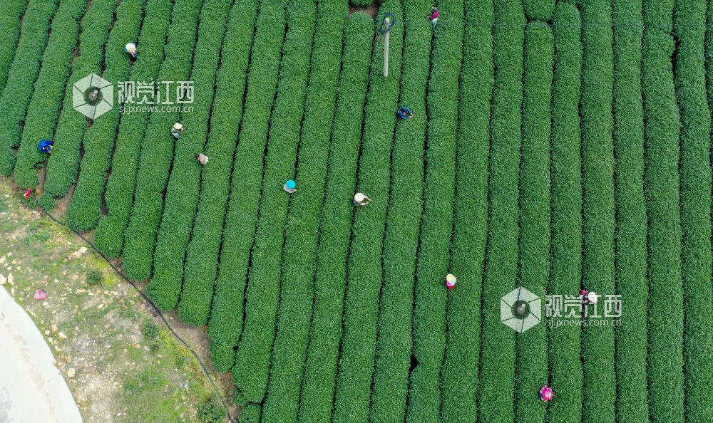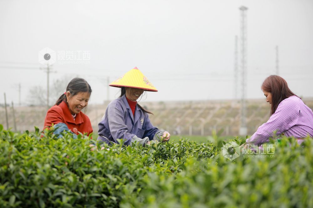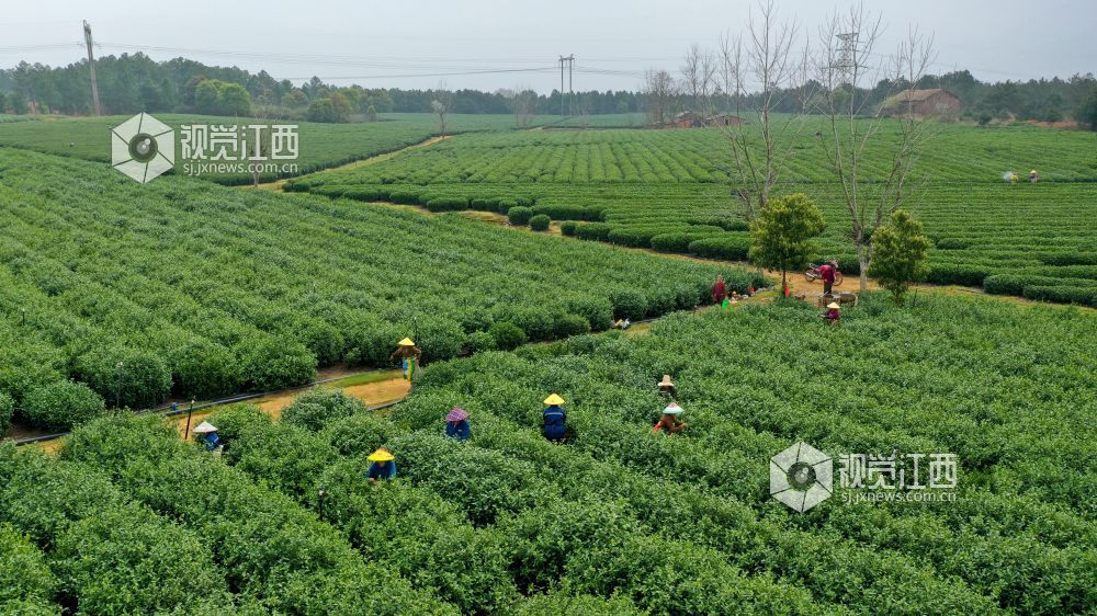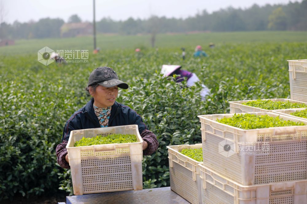 春暖花开时节,江西省吉安市吉水县各地茶园陆续开园,村民抢抓晴好天气采摘春茶供应市场。