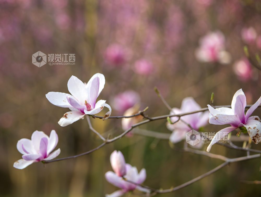 2022年3月15日,随着气温的升高,万物复苏,江西省分宜县洋江镇辑睦桥村的数百株玉兰花悄然怒放,散发出淡淡清香,美不胜收,花蕾在春风中舒展、摇曳,成为一道美丽的风景线。