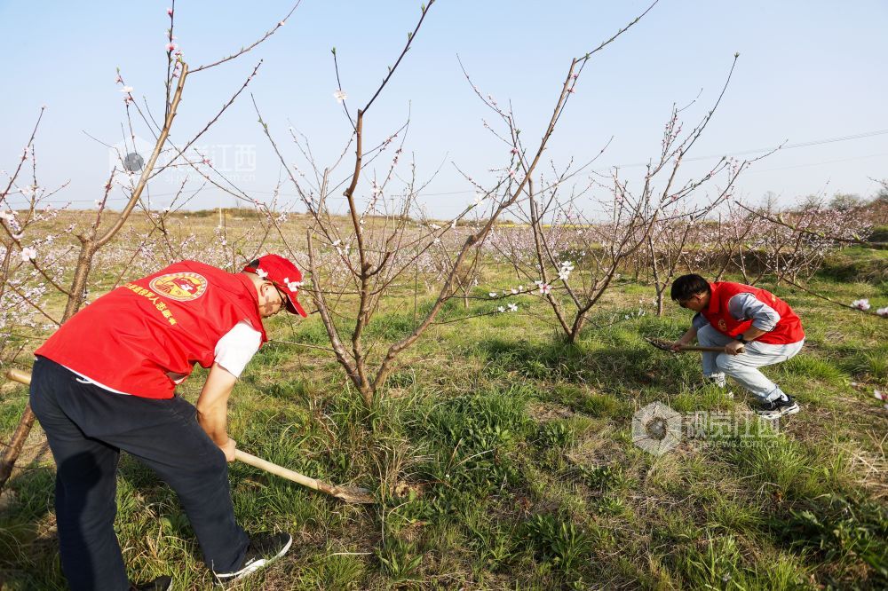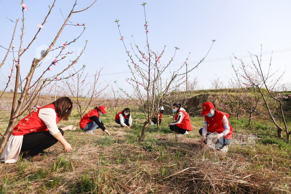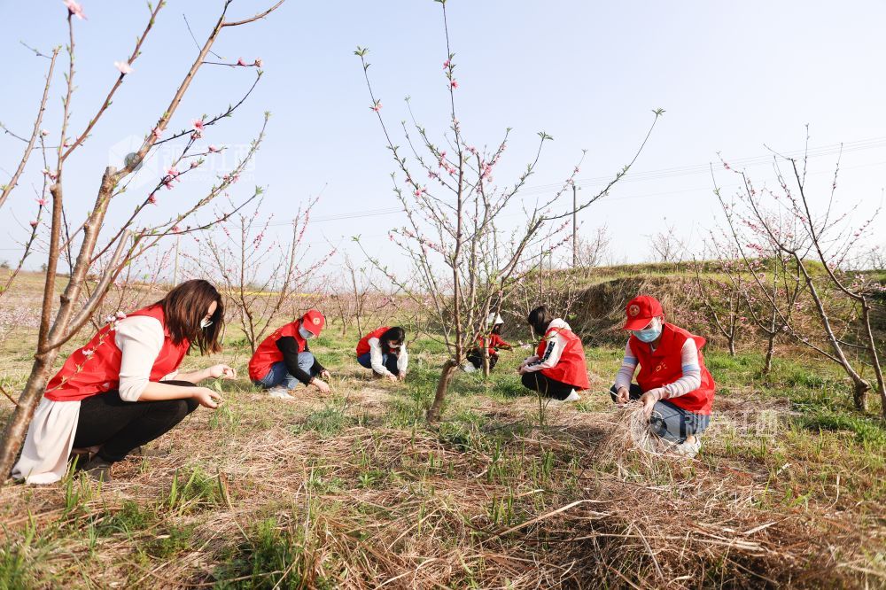 2022年3月15日,江西省九江市湖口县马影镇新时代文明实践站的志愿者们来到该镇柯观村水蜜桃基地,开展助力春耕志愿服务活动为今年水蜜桃丰收打好基地。