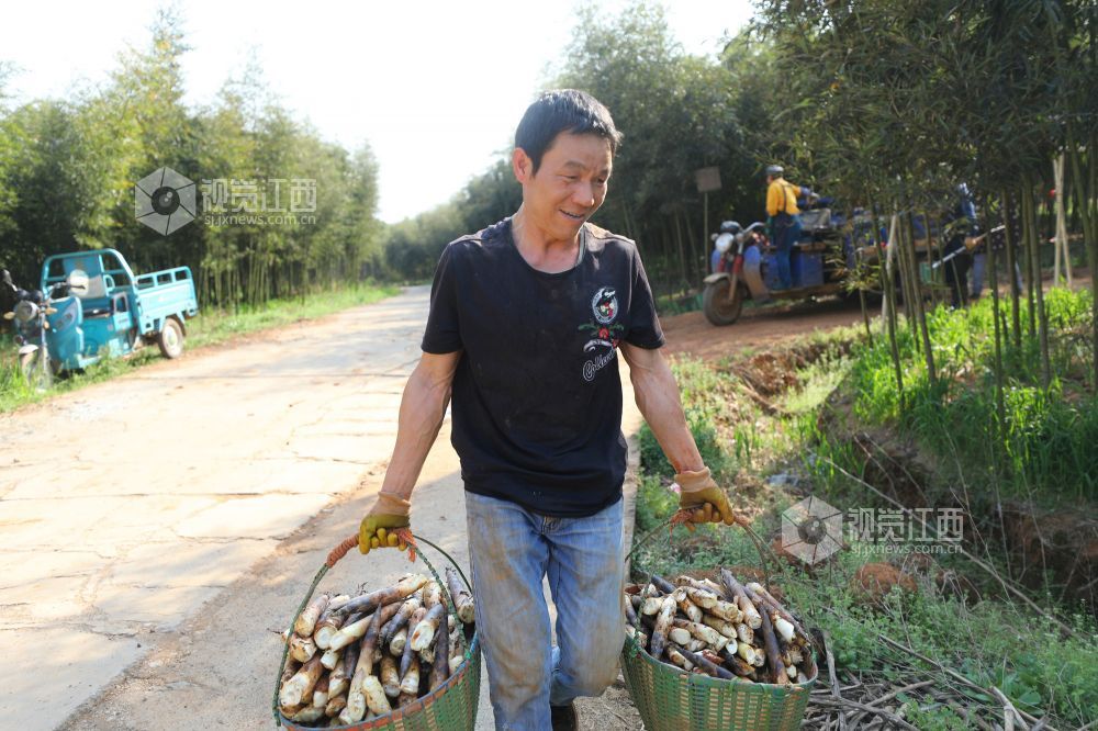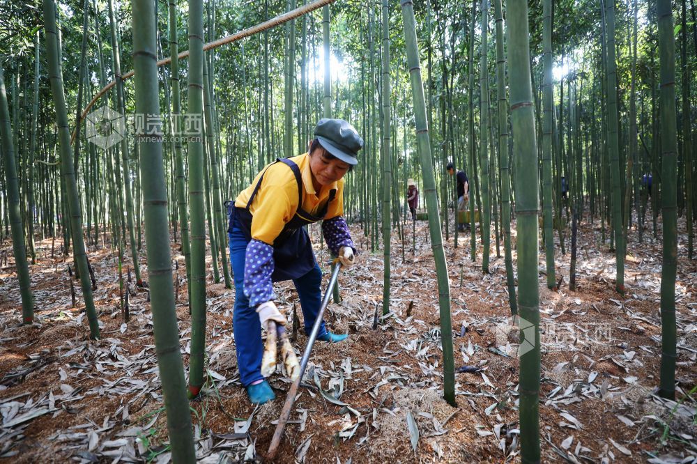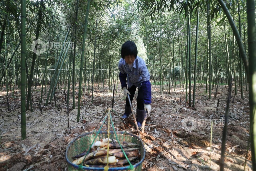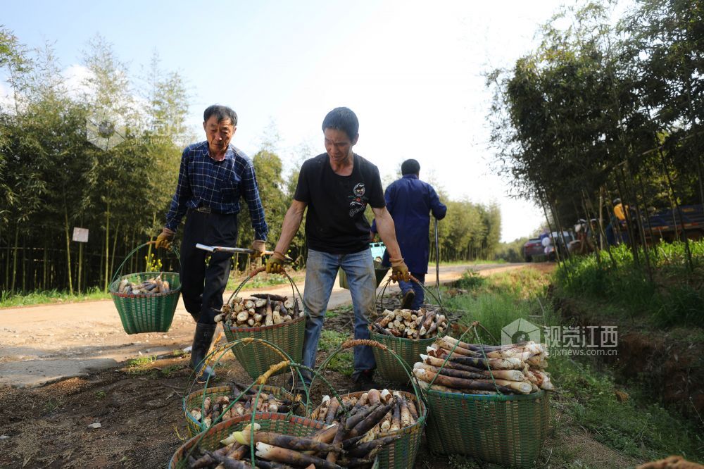 3月15日,江西省莲花县良坊镇雷竹种植基地,村民正在忙着采收雷竹笋,销往江苏、上海、浙江等地市场。