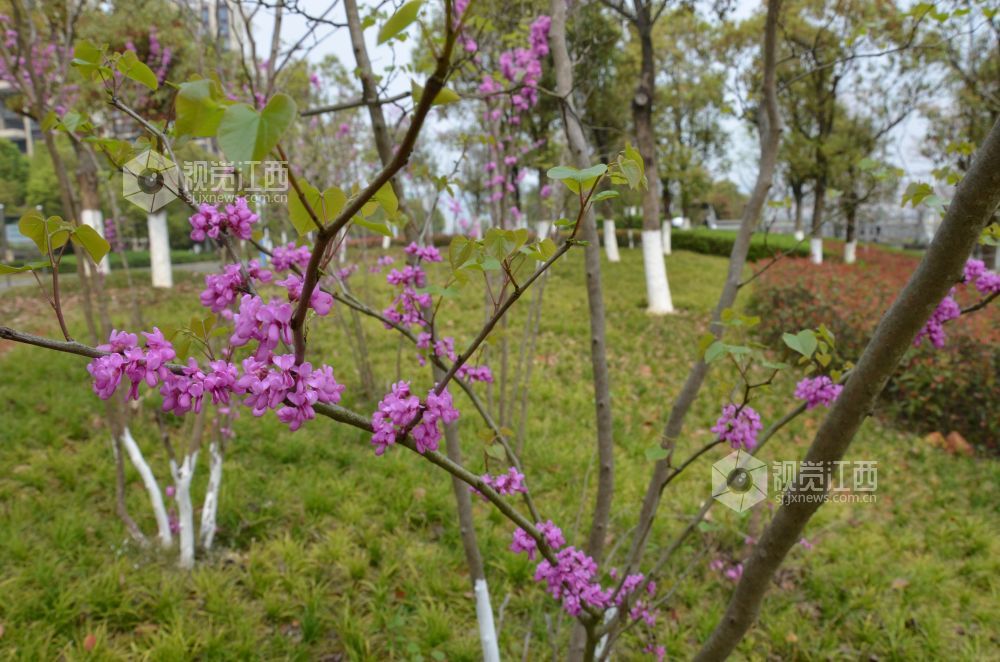 阳春三月,草长莺飞。3月16日,在江西省永新县的滨江路上,各种树木抽出了新的枝条,长出嫩绿的叶子,桃花、梅花、樱花等花卉也竞相开放,散发出阵阵清香,花朵俏丽地点缀在枝头,或粉嫩娇艳、或纯洁无瑕,放眼望去,满目花色与茵茵绿地交相辉映,大地呈现出春意盎然、生机勃勃的景象。