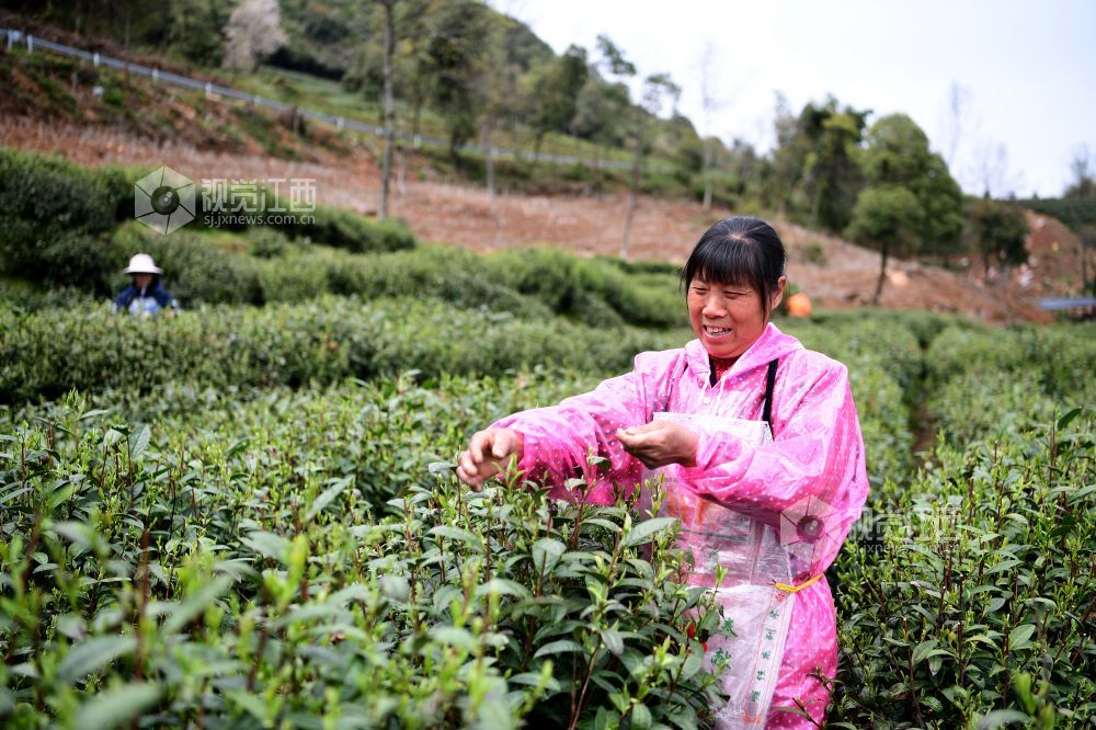 2022年3月18日,在江西省上饶市铅山县英将乡汉阳村绿和茶园,村民正在采摘春茶。近年来,铅山大力发展茶产业,选育优质茶种,规范茶叶种植标准,茶产业发展迅速,成为拓宽山区农民致富路的特色产业和生态产业,有效助推当地乡村振兴。据悉,绿和茶叶公司能带动周边村民200余人就业,实现人均增收6000余元。