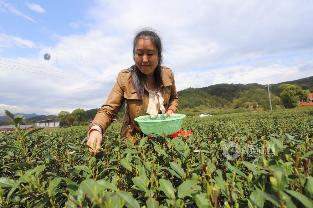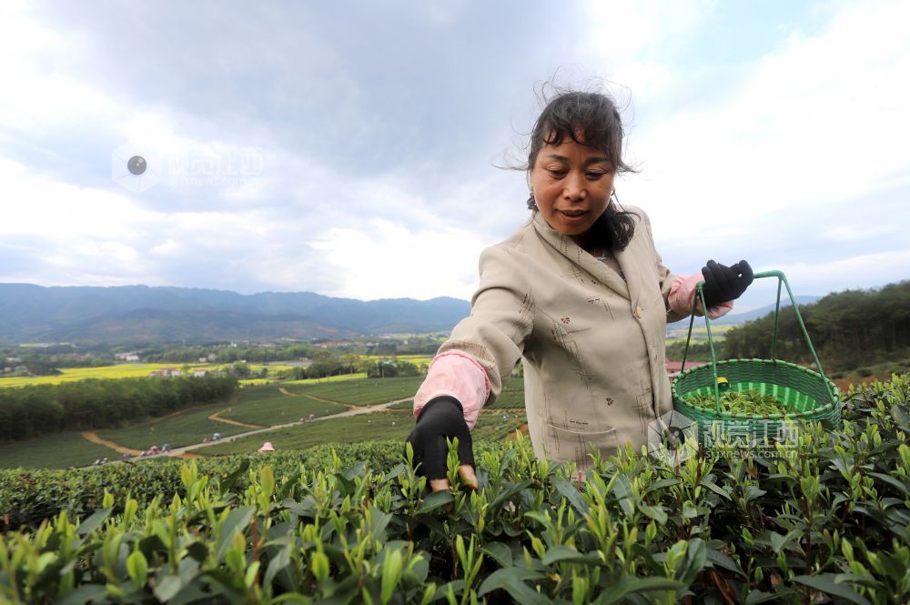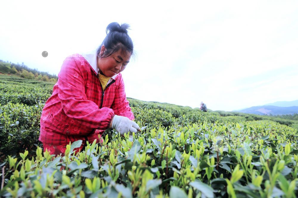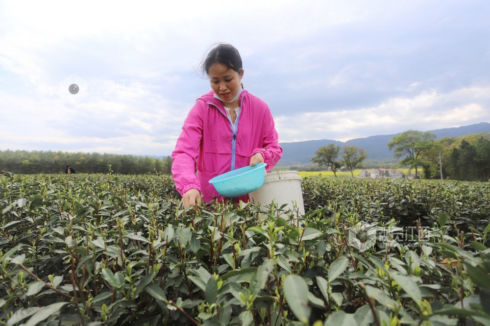2022年3月19日,江西省吉安市安福县洋溪镇塘里村村民正在采摘茶叶。塘里村茶场由返乡人士牵头创办,面积700余亩,采取“合作社+农户”的形式经营,村民在获得股金分红的同时,参与茶园的管理、采茶、制茶,获得劳务收入,实现稳定增收。春分时节,各地迎来春茶采摘季,该茶场每天投入50多人采茶,整个茶场一派忙碌景象。