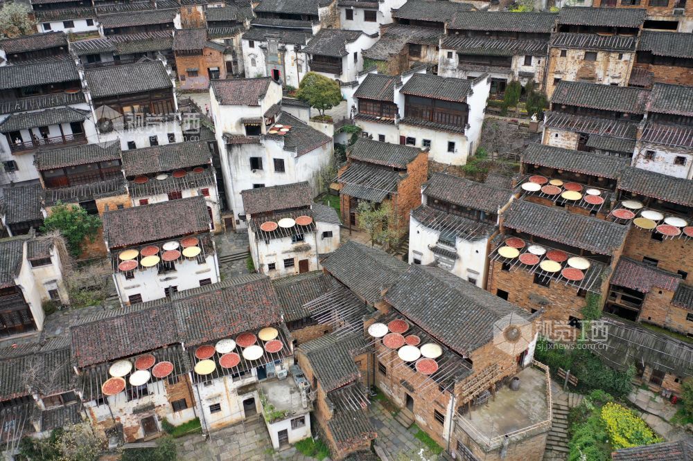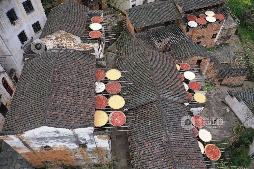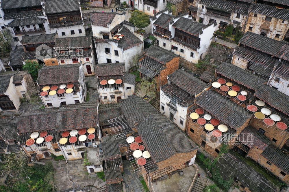 白墙黛瓦民居的屋顶搭起了晒架,圆圆晒匾里五彩缤纷丰收果实的组合,绘就出世界独一无二的"晒秋"农俗景观,加上梯田油菜花,高度饱和丰富斑斓的色彩,是江西省婺源县江湾镇篁岭景区最美的调色板,来这里您就可以享受一场视觉盛宴。