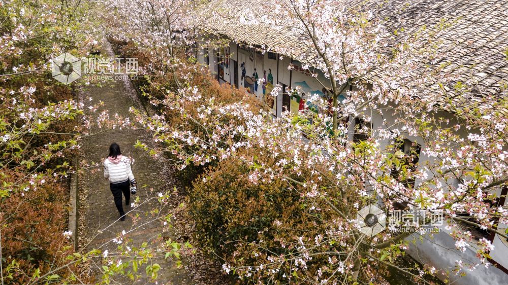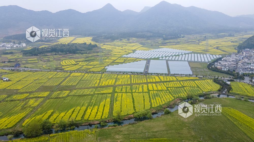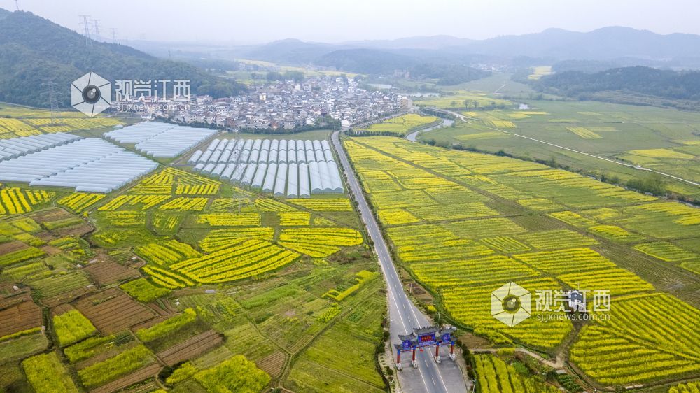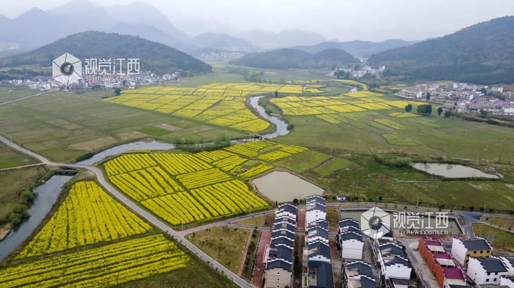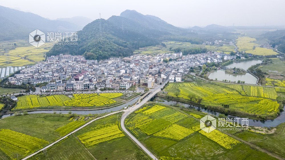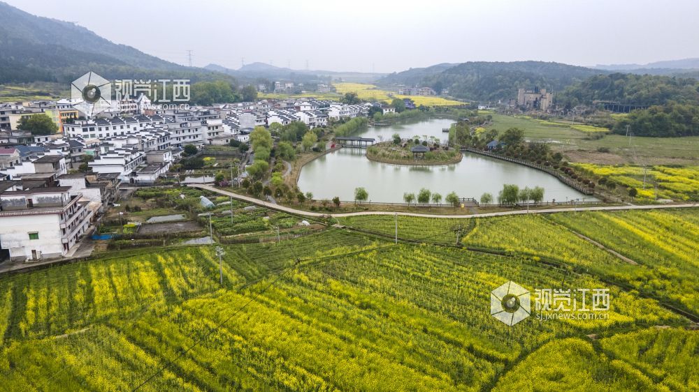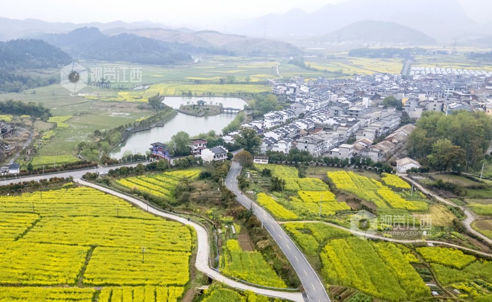 3月20日,航拍下的江西省新余市仙女湖区欧里镇白梅村春意盎然,油菜花、樱花竞相开放,好一派田园风光,与青山、绿水、白墙黛瓦共同构成一道新余市别具一格的亮丽风景线。