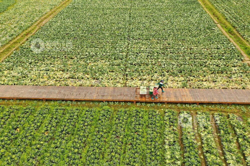 时下,铅山县永平镇老李家万亩蔬菜基地内的花菜、包心菜陆续成熟,村民忙着采收、包装、外运。铅山县采用“龙头企业+村集体经济合作社+农户”的模式,建设万亩蔬菜基地,打造“新农旅”模式,探索发展大农业的“铅山经验”,带动沿线村集体经济增收和村民提供稳定就业岗位,带动300余名村民就业,可实现人均增收6000余元。
