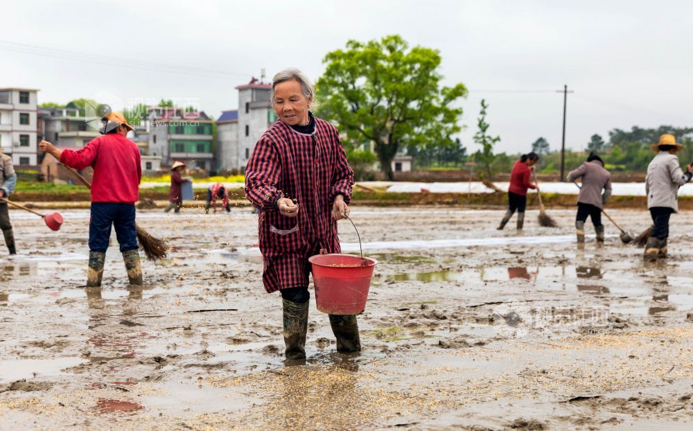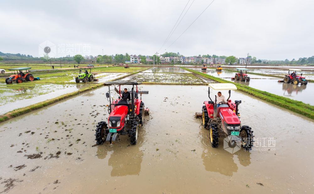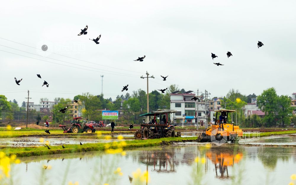 眼下正是春耕播种的好时节,3月21日,在江西省永新县芦溪乡社园村早稻育秧基地,农机手正抢抓农时驾驶农机翻耕田地,村民在翻耕好的田里播撒稻种,田间地头处处呈现“人勤春来早,春耕播种忙”的喜人景象。