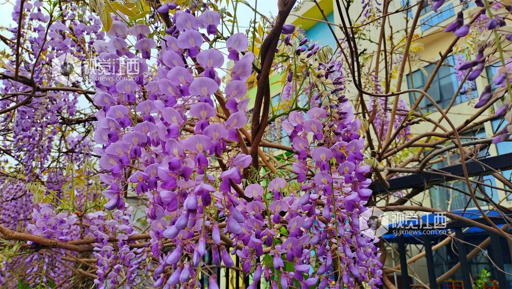 阳春三月,百花齐放。进入3月下旬后,在江西吉安城区的公园里、小区内、街道旁,浪漫优雅的紫藤花正悄然绽放,在不经意间,成为城区一道亮丽的景致。