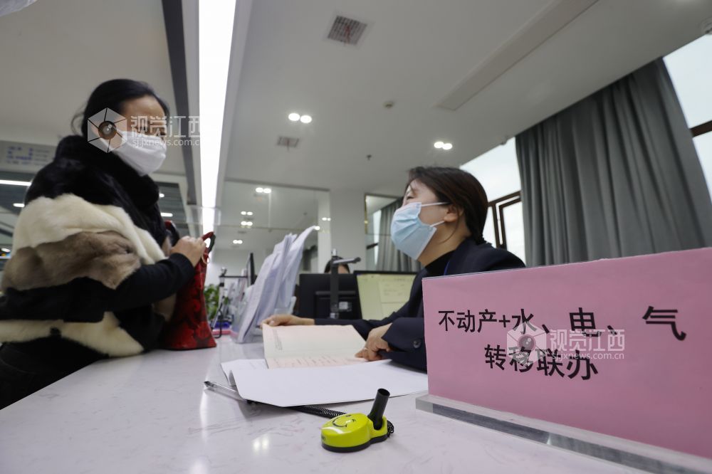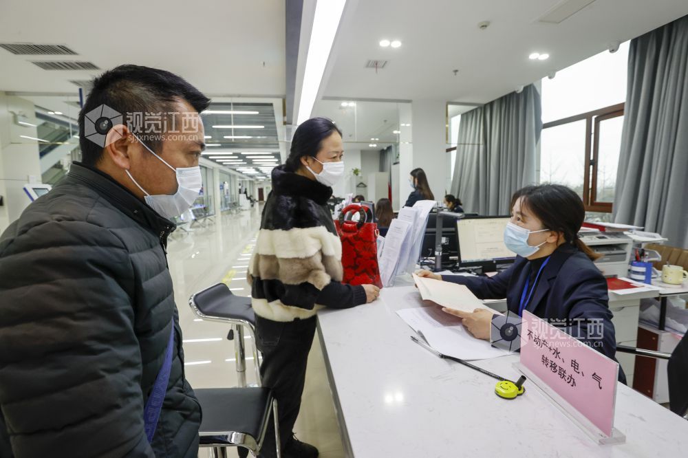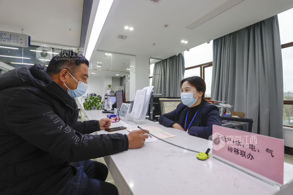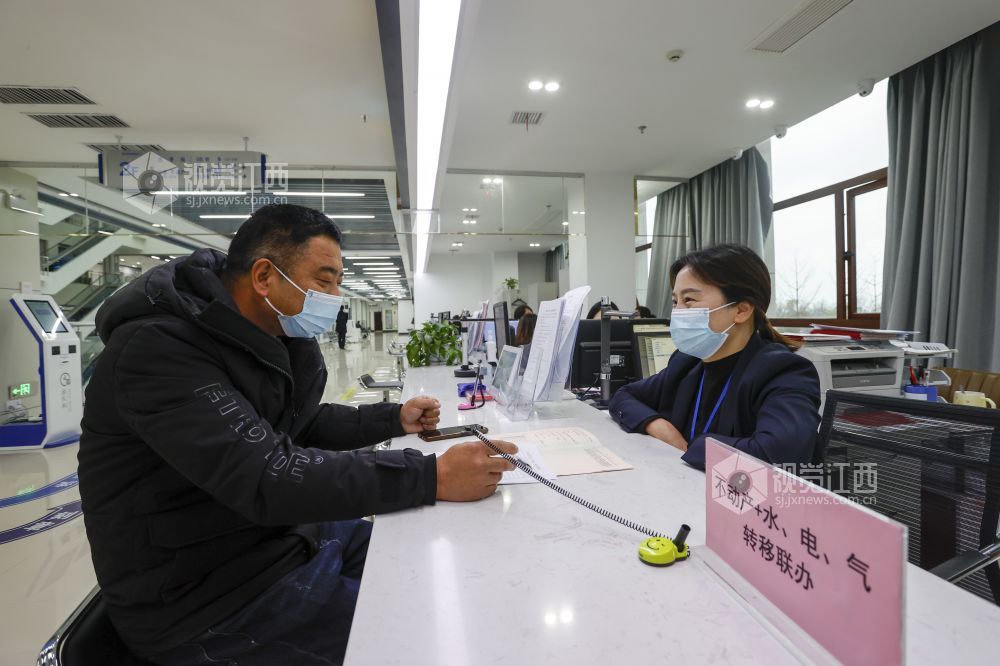 2022年3月22日,江西省九江市湖口县政务服务中心 “不动产+水电气”转移联办窗口,市民正在办理或咨询相关业务。