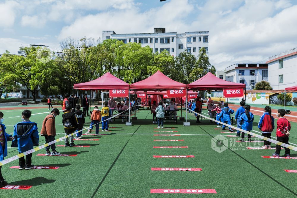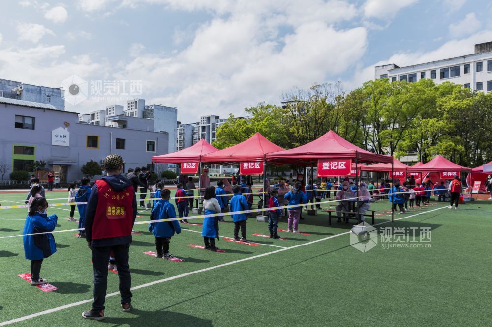 为积极应对当前新冠肺炎疫情防控形势,进一步提高学校疫情防控应急处置能力,保障校园安全稳定,3月25日下午,江西省新余市仙女湖区河下中心小学在校内操场开展全员核酸检测工作预演,根据防控要求,演练现场划分为等候区(信息检录区)、采样区、缓冲区和临时隔离区等多个功能区。为保障现场秩序和人员安全,各区均采用警戒带隔离、一米线等方式设置通道,有序引导采样人群,控制人群密度和人员流量,保证队伍单向流动。现场设3个采样台,每个采样台均由信息录入员、采样员和采样助手三人组成。在老师的带领下,学生以班级为单位有序排队,来自家委会的10名志愿者以及河下卫生院的16名医护人员分工明确,现场秩序井然,一个半小时的时间内,高效完成全校师生830余人的检测。