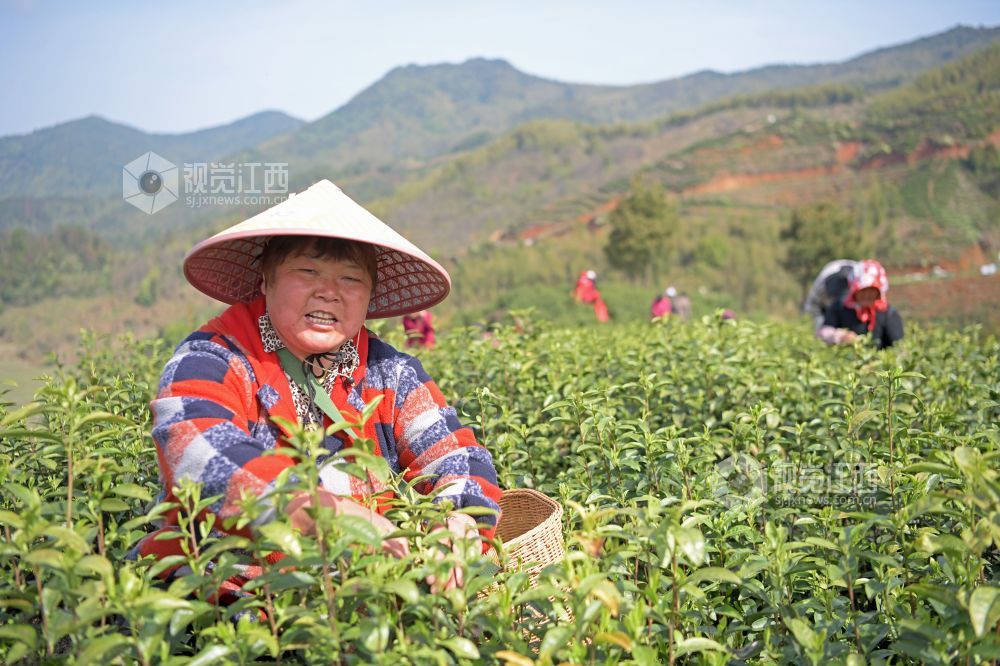 2022年3月24日,在江西省上饶市铅山县稼轩乡轸源村千亩茶山上,村民在茶山采茶。近年来,铅山县稼轩乡发挥茶产业特色,依托地理优势,按照“村集体经济合作社+公司+农户”互动发展的模式,积极做活一片叶子,发展壮大村集体经济。据悉,该茶山每年可产出茶叶5万余公斤,为轸源村集体经济实现年增收约7万元,同时可以吸纳400余村民就业,人均年增收1万元以上,还可为76户脱贫户带来分红资金,户均分红资金900余元。